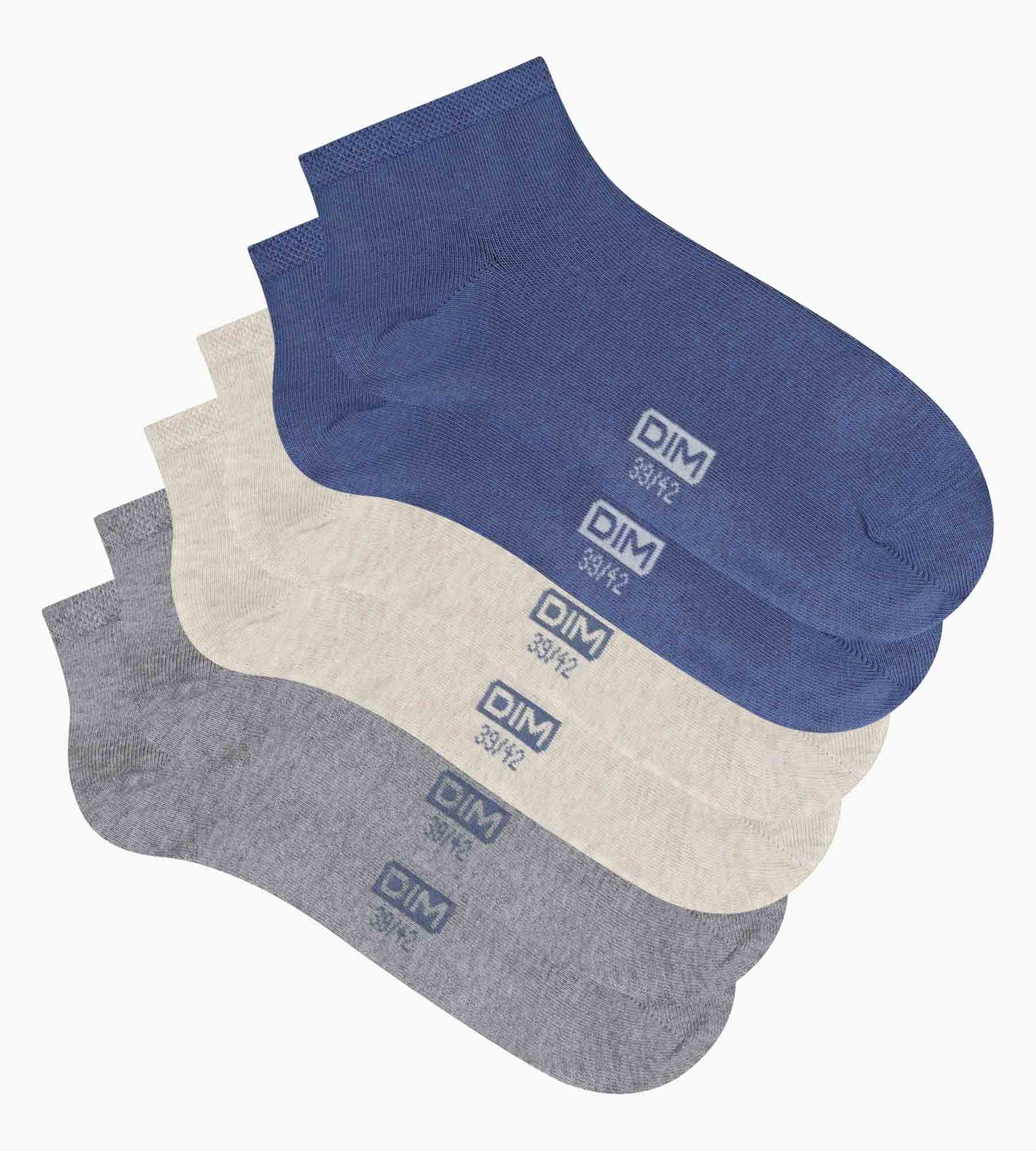 Lot de 3 paires de socquettes homme Bleu Gris Beige Dim Coton