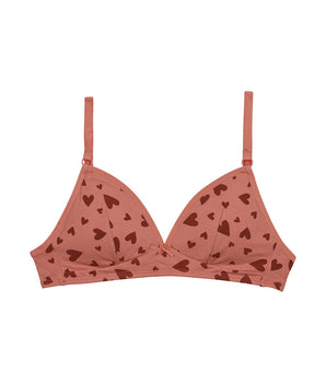 Votre ado affiche une allure romantique à souhait avec le soutien-gorge triangle en coton stretch Brique Les Pockets aux motifs coeurs passionnés !