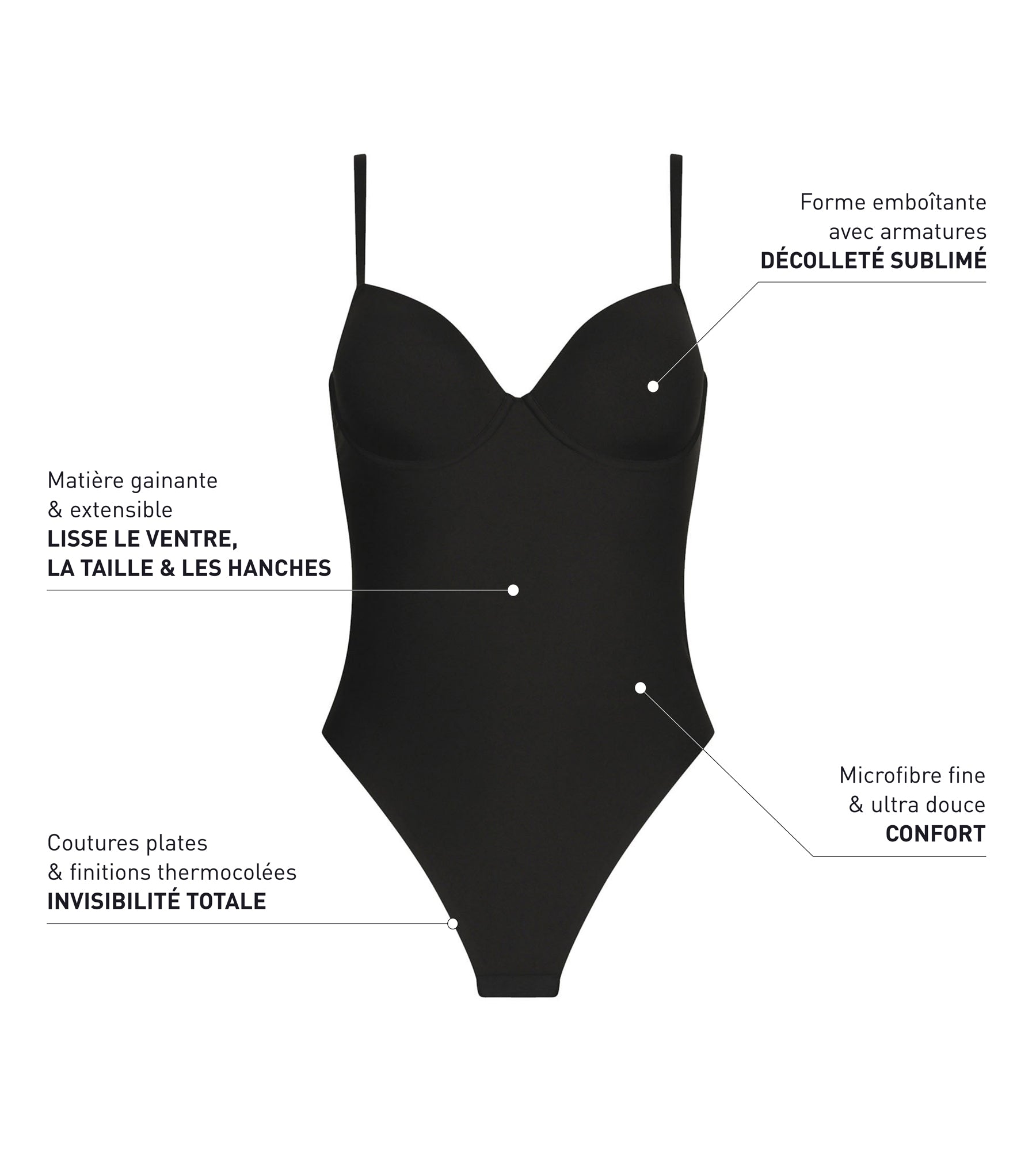 Le body string gainant avec armature DIM SILHOUETTE INVISIBLE sculpte parfaitement votre silhouette, tout en restant invisible sous vos vêtements.