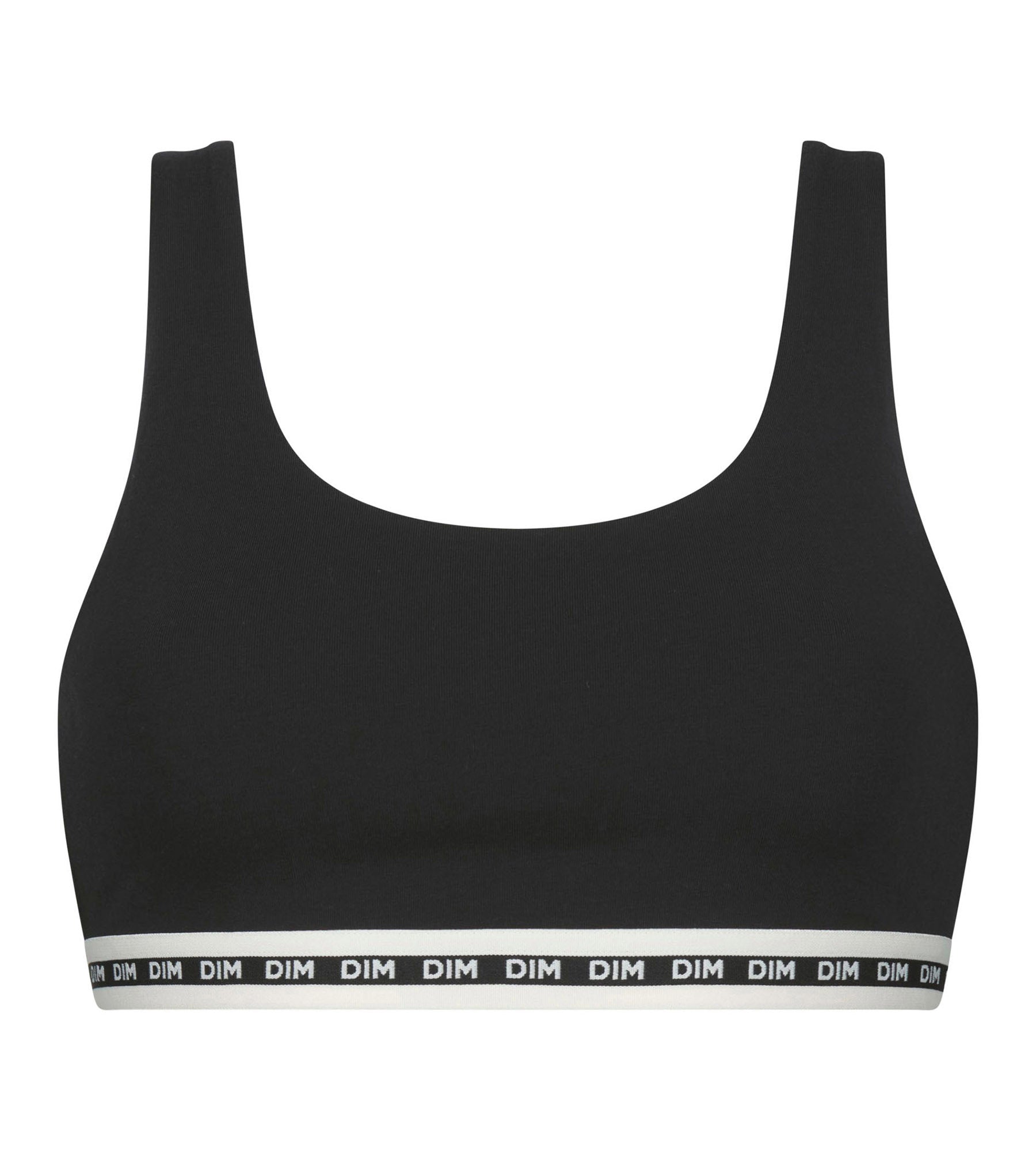 Misez sur le confort avec notre brassière femme sans armature en coton modal Noire Dim Icons Essentiel, à la bande sous poitrine très sportswear !