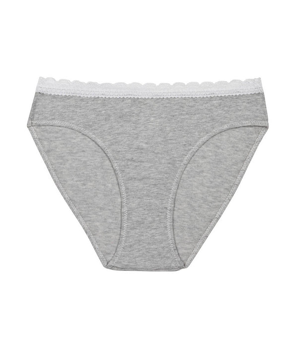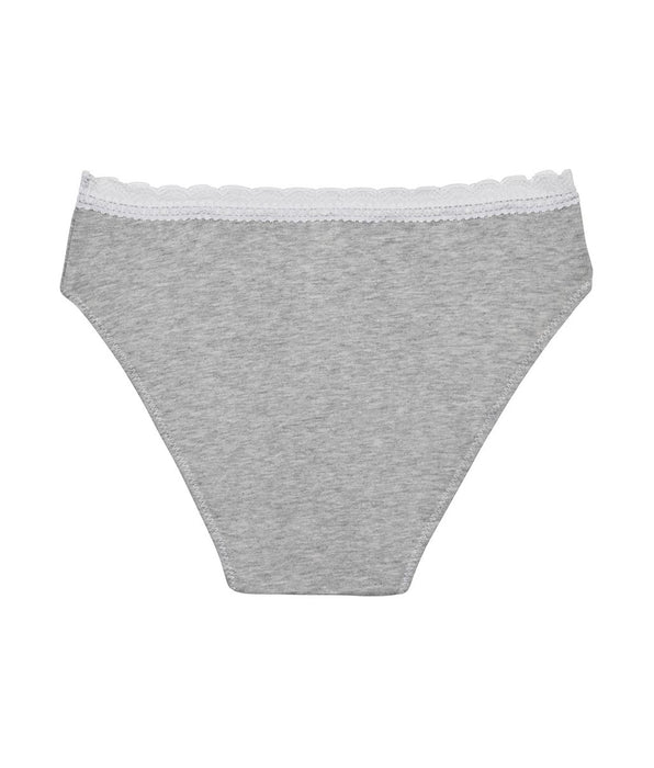 Pour un style casual et raffiné, les ados adoptent cette culotte enfant Gris Chiné Dim Trendy en coton stretch velouté et finitions en dentelle fine.