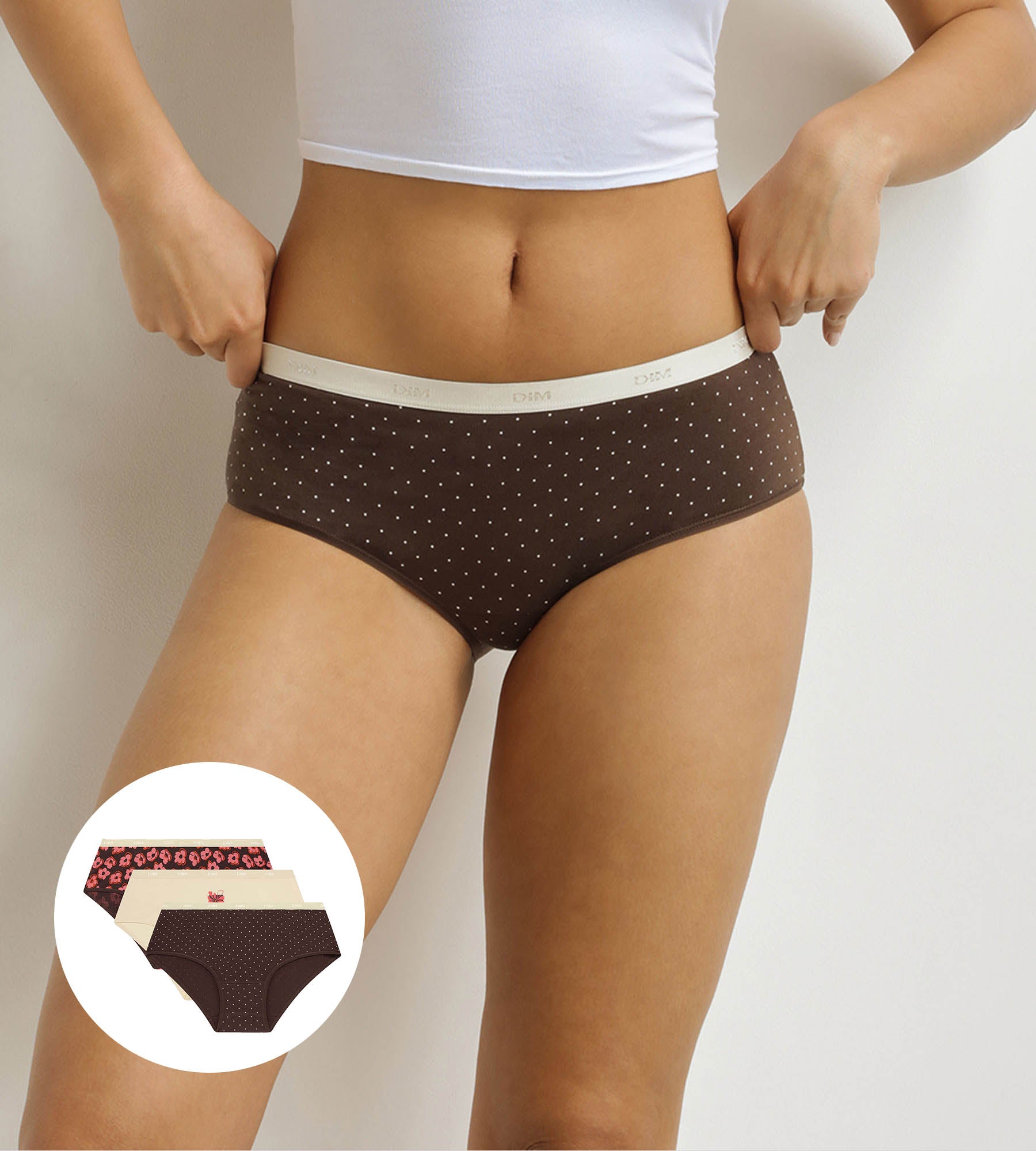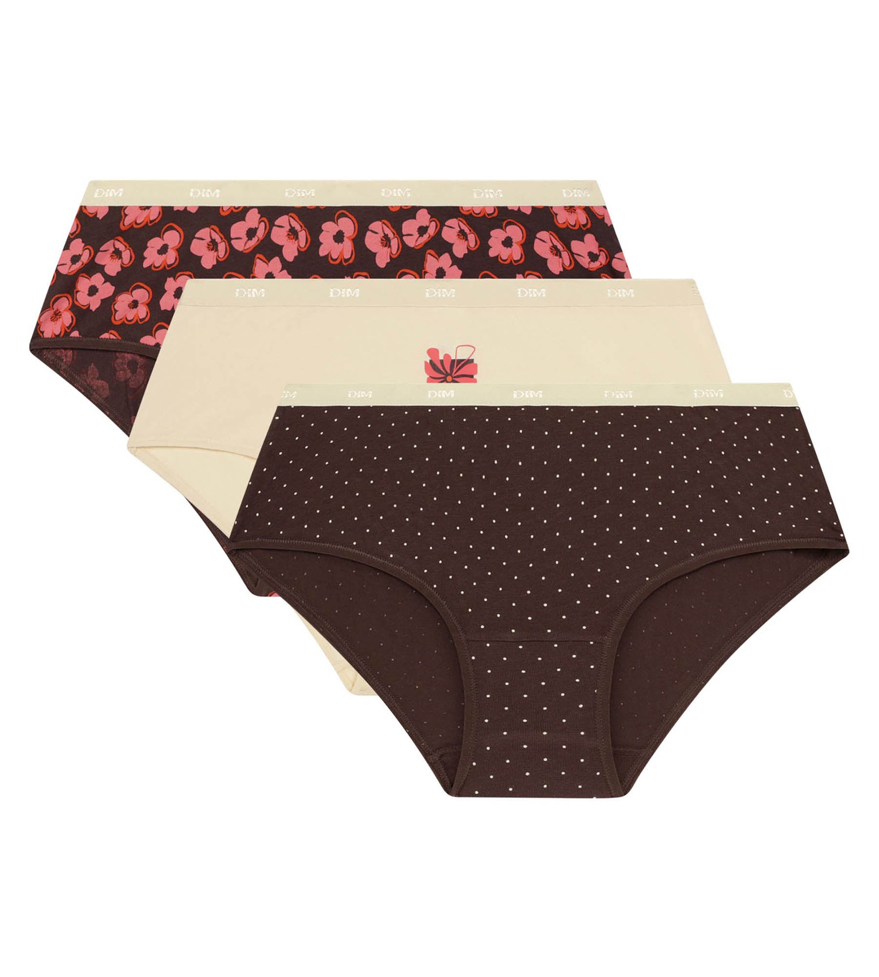Succombez pour ce lot de 3 boxers femme en coton stretch Les Pockets de Dim au style rétro graphique !
