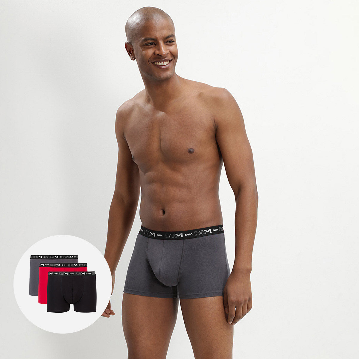 Lot de 3 boxers gris, rouge chili et noir Coton Stretch