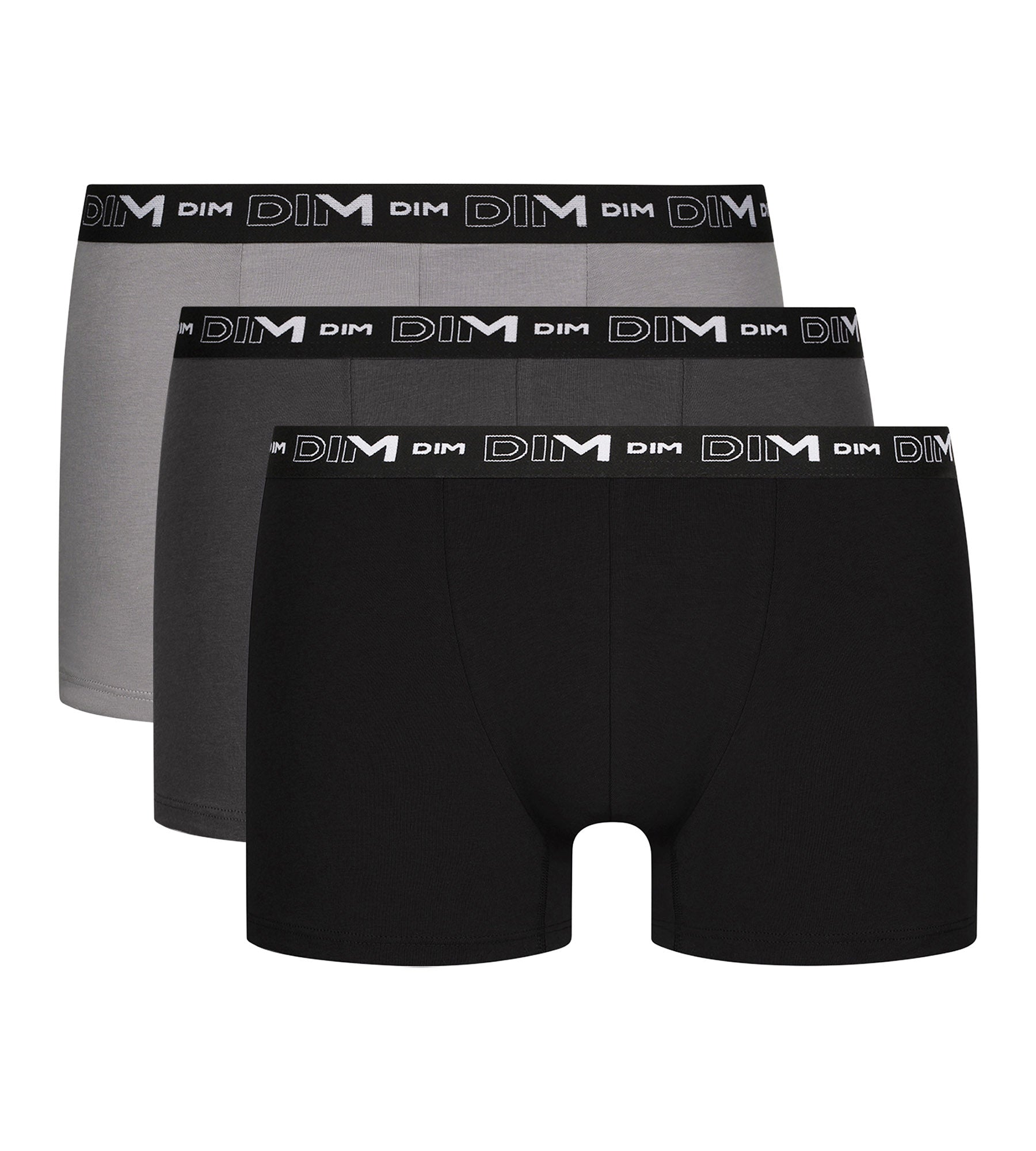 Lot de 3 boxers homme en coton Noir Gris Dim Coton Stretch