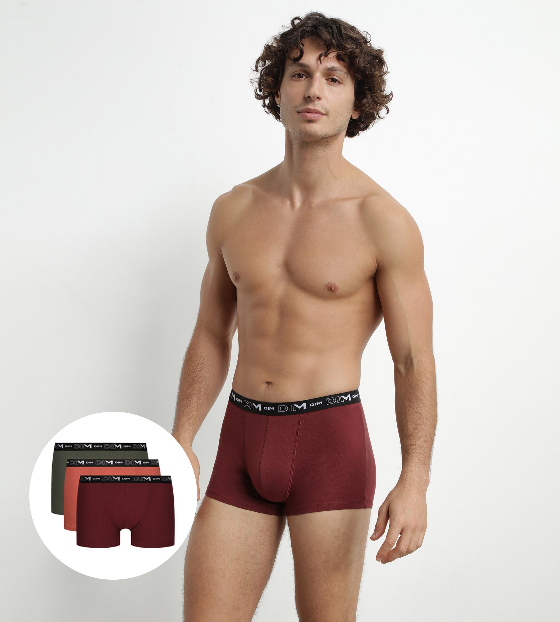 Lot de 3 boxers homme en coton Rouge Vert Dim Coton Stretch
