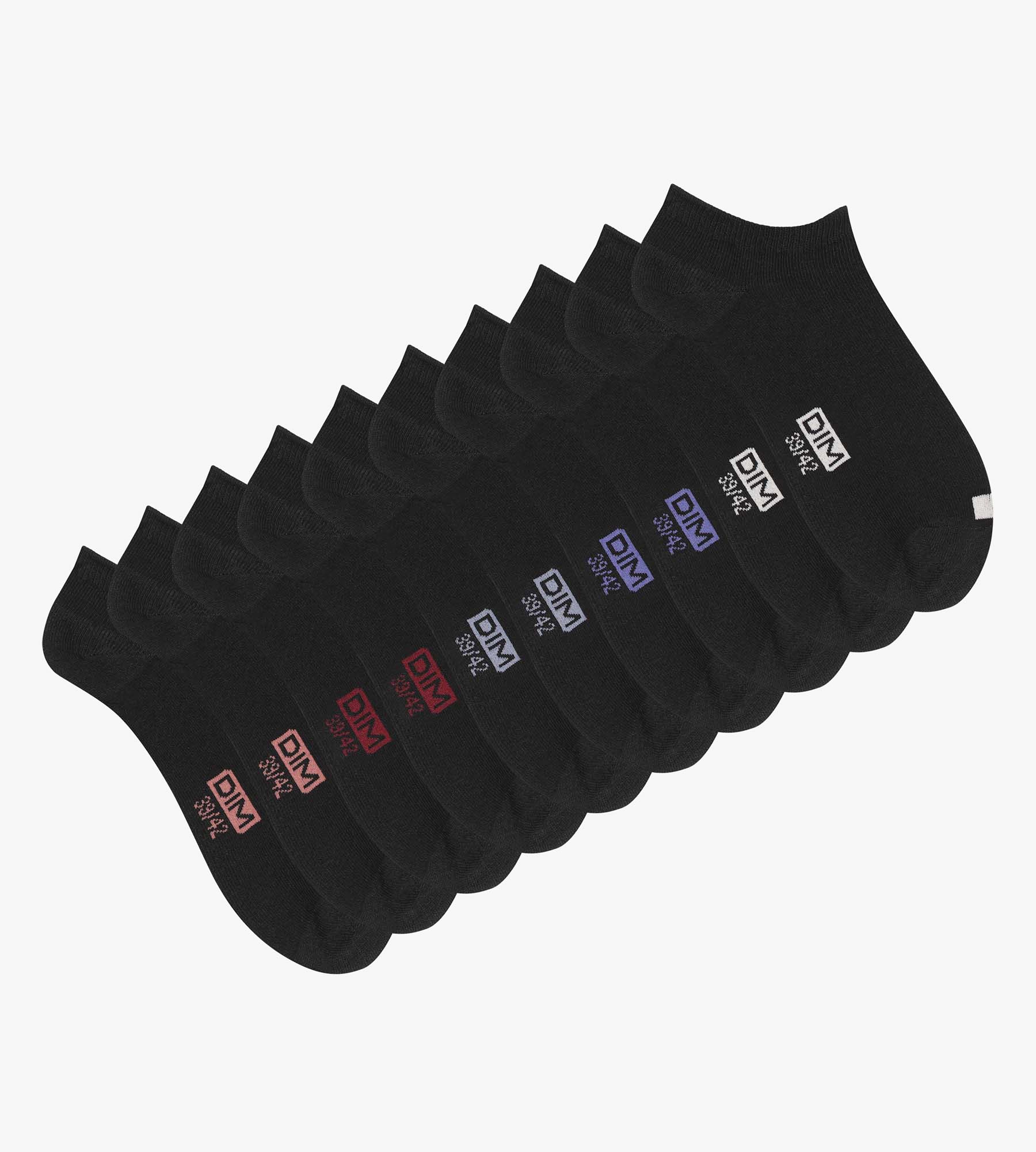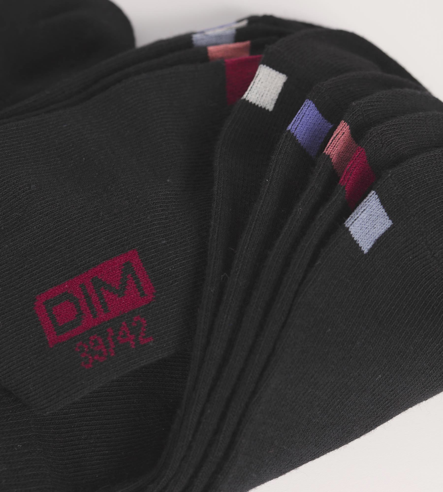 Basique intemporel et fonctionnel, misez sur le lot de 5 paires de socquettes homme en coton Noir EcoDim, à vignettes colorées !