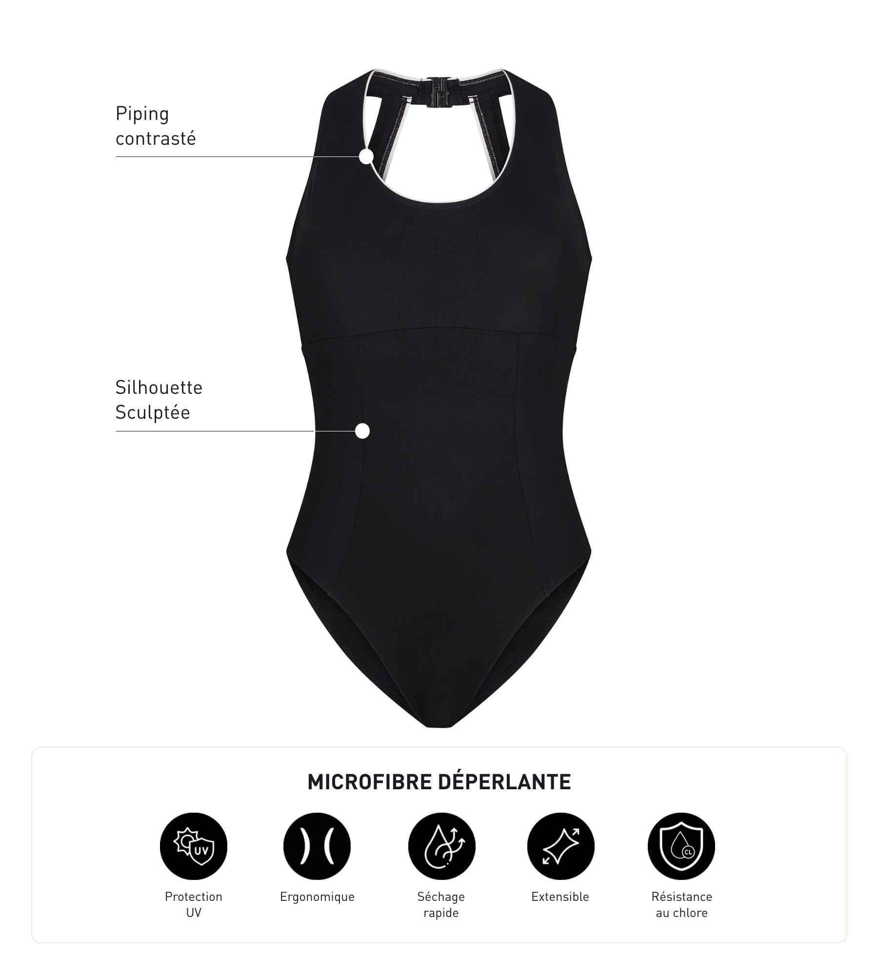Esthétique et pratique, le maillot de bain 1 pièce femme en microfibre Noir Dim Move booste vos séances de natation !