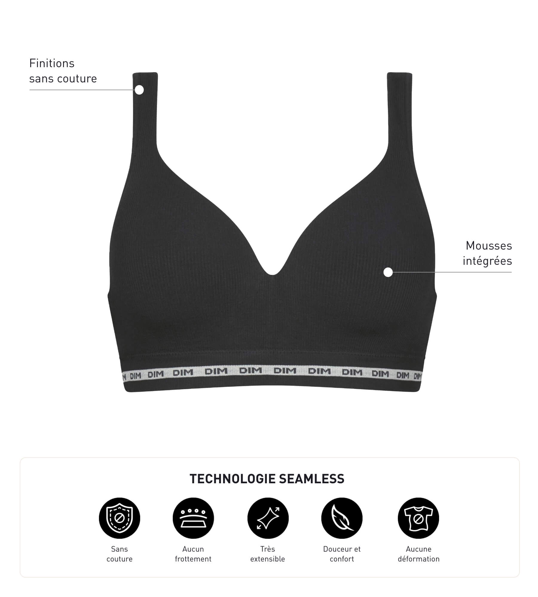Soutien-gorge Noir côtelé sans armature ni couture Dim Icons Seamless