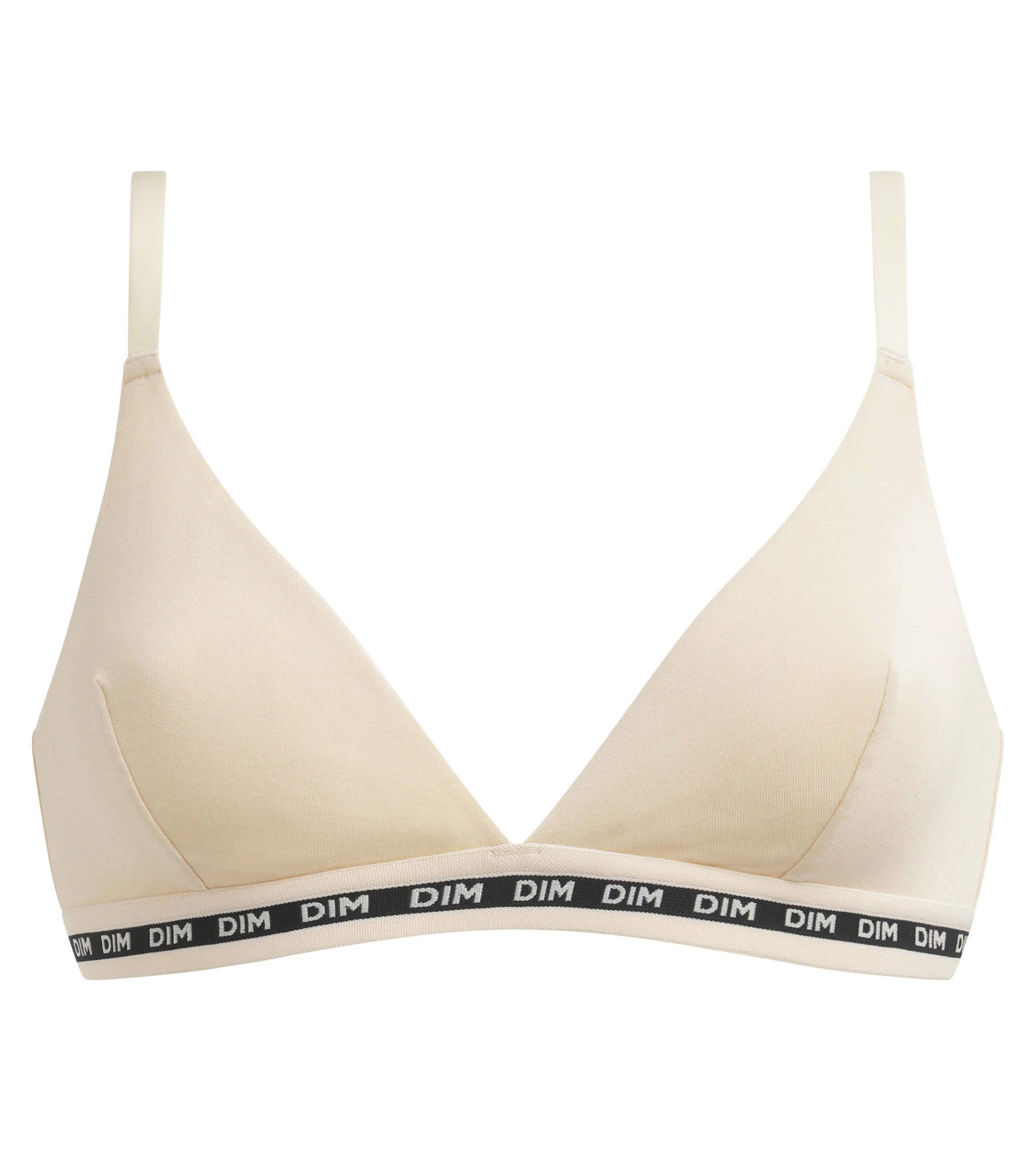 Sublimez votre poitrine avec confort et féminité grâce au soutien-gorge triangle sans armature Dim Icons Essentiel en coton modal Beige Ivoire.