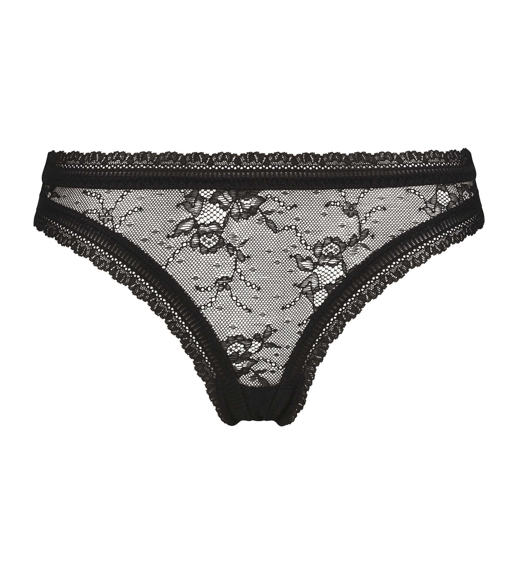 Sublimez votre silhouette avec le string femme en dentelle transparente noire Dim Romance, aux détails floraux délicats.