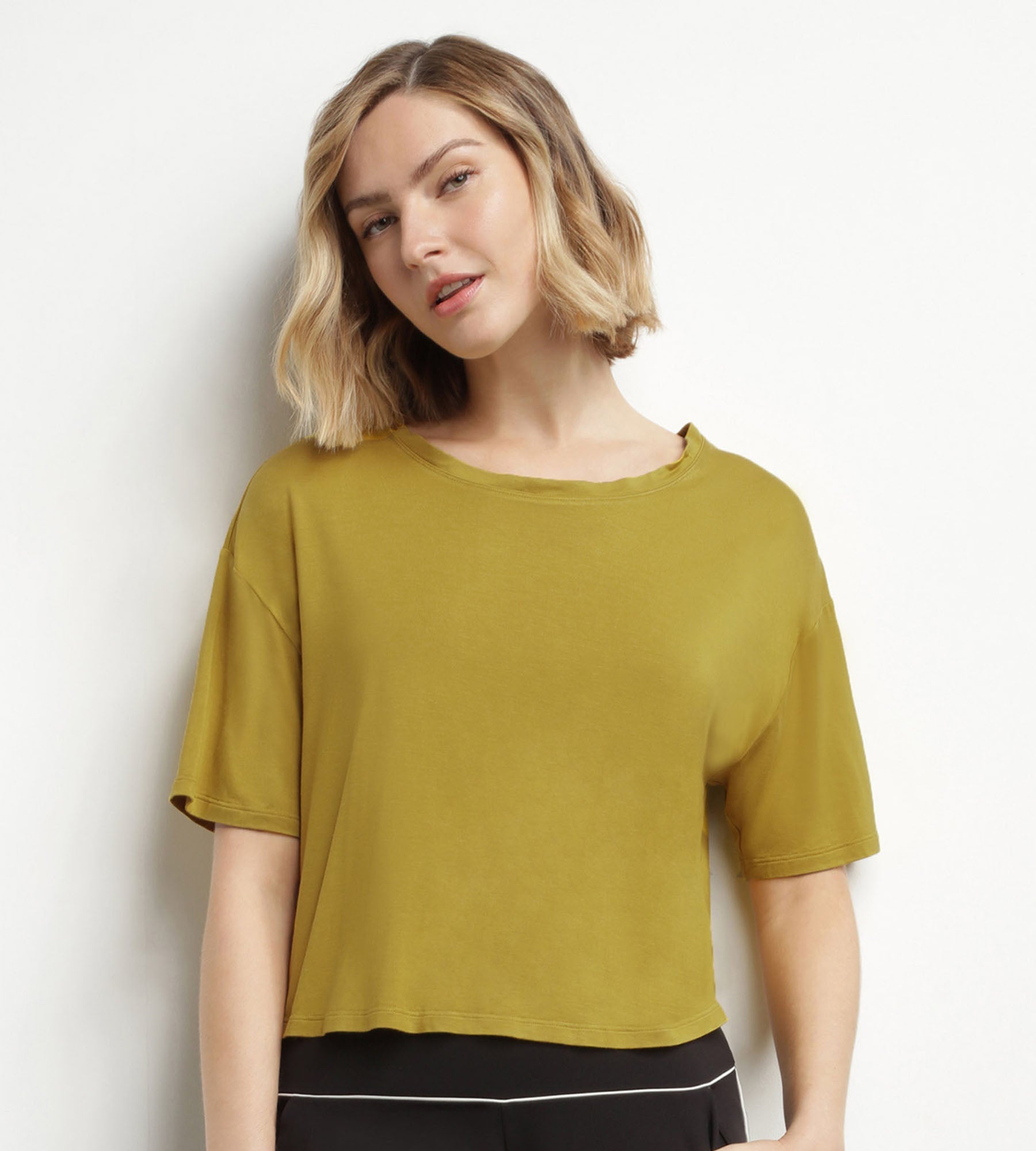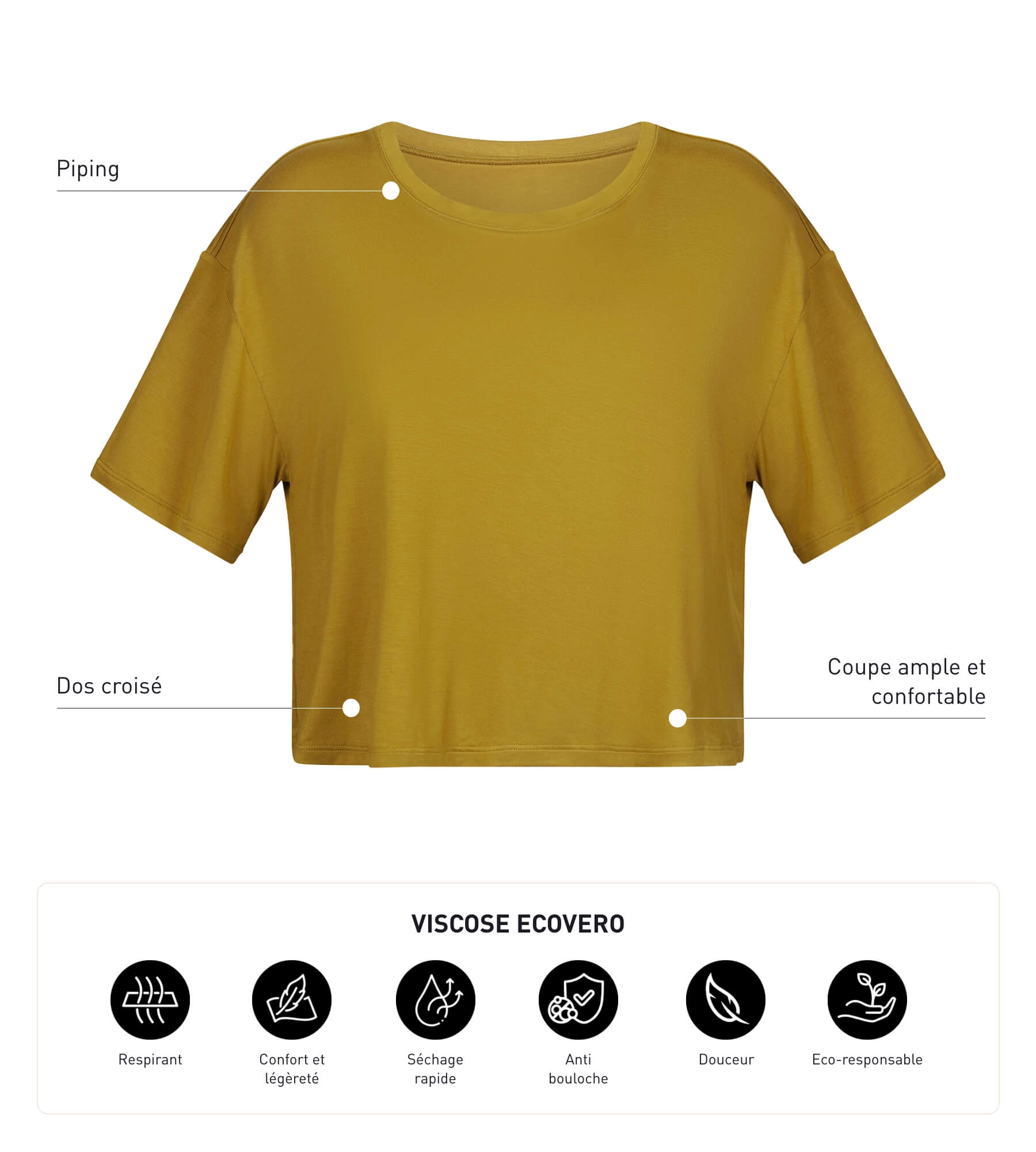 Finalisez votre look de sport avec pep’s et confort grâce au t-shirt ouvert en viscose Olive Dim Move !