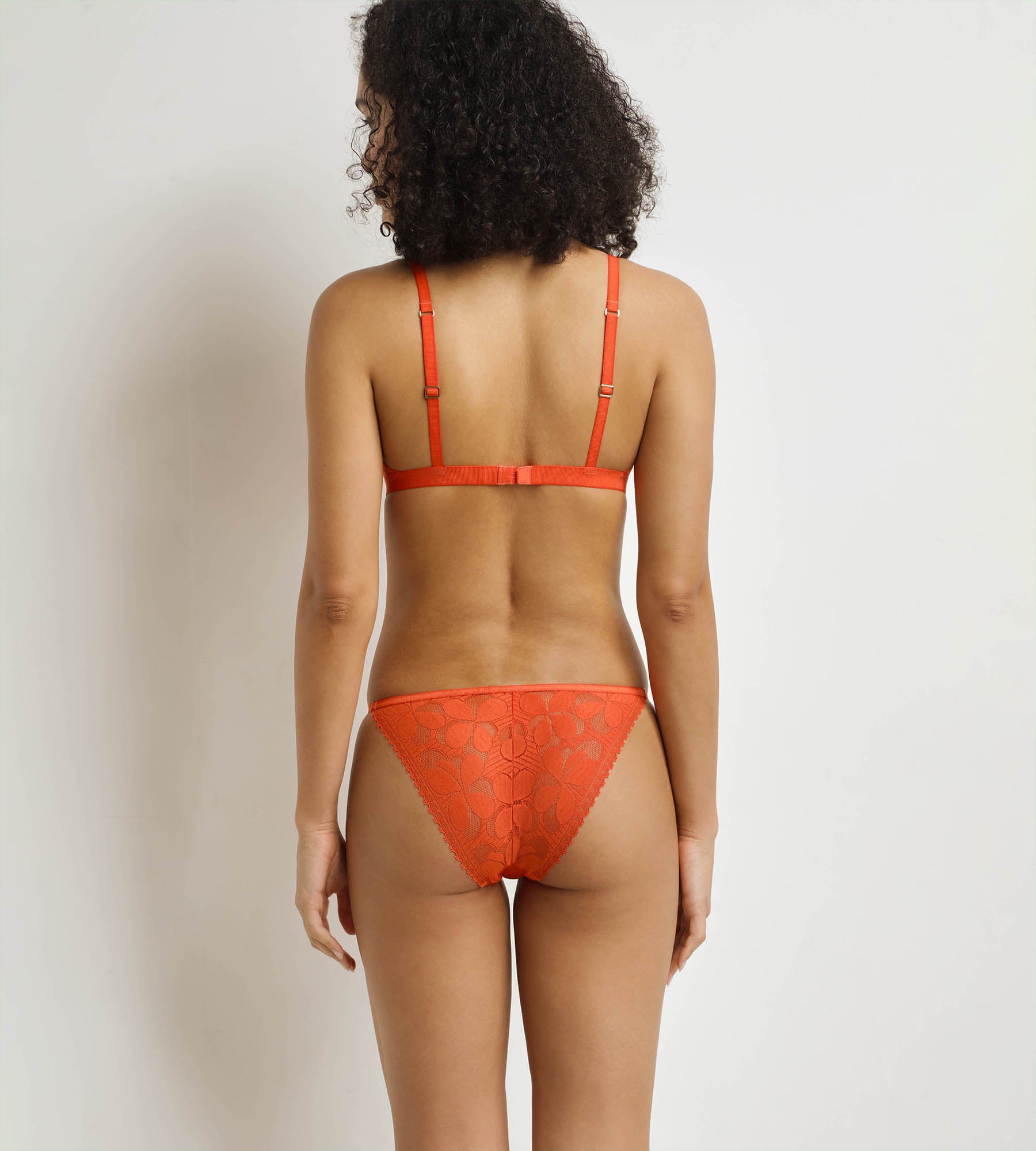 Affichez une allure pétillante et délicate avec le tanga femme Art Flower de Dim en dentelle Orange.