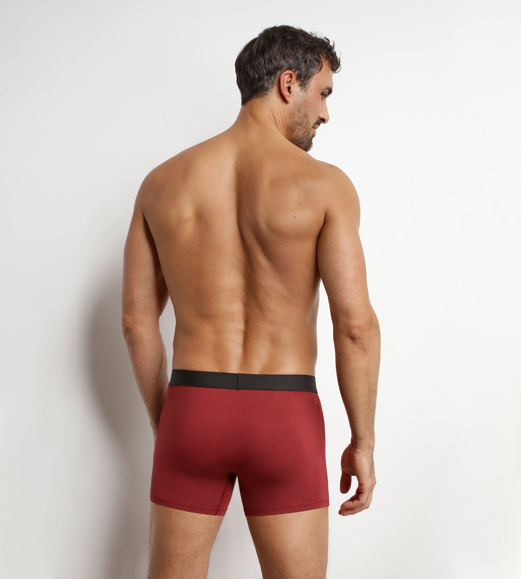 Ce lot de 3 boxers homme Pur Confort s’inspire de la nature pour créer une base de sous-vêtements indémodable mais affirmée : un Noir franc, un Kaki végétal et un Rouge puissant qui apporte ce qu’il faut de relief. Le boxer, avec son corps en coton-viscose, enveloppe parfaitement les cuisses et reste bien en place grâce à sa ceinture contrastée lisse. Sous un pantalon slim comme sous un chino léger, les finitions plates font leur travail : aucune surépaisseur, aucune gêne, juste une sensation de confort et de maintien durable.
