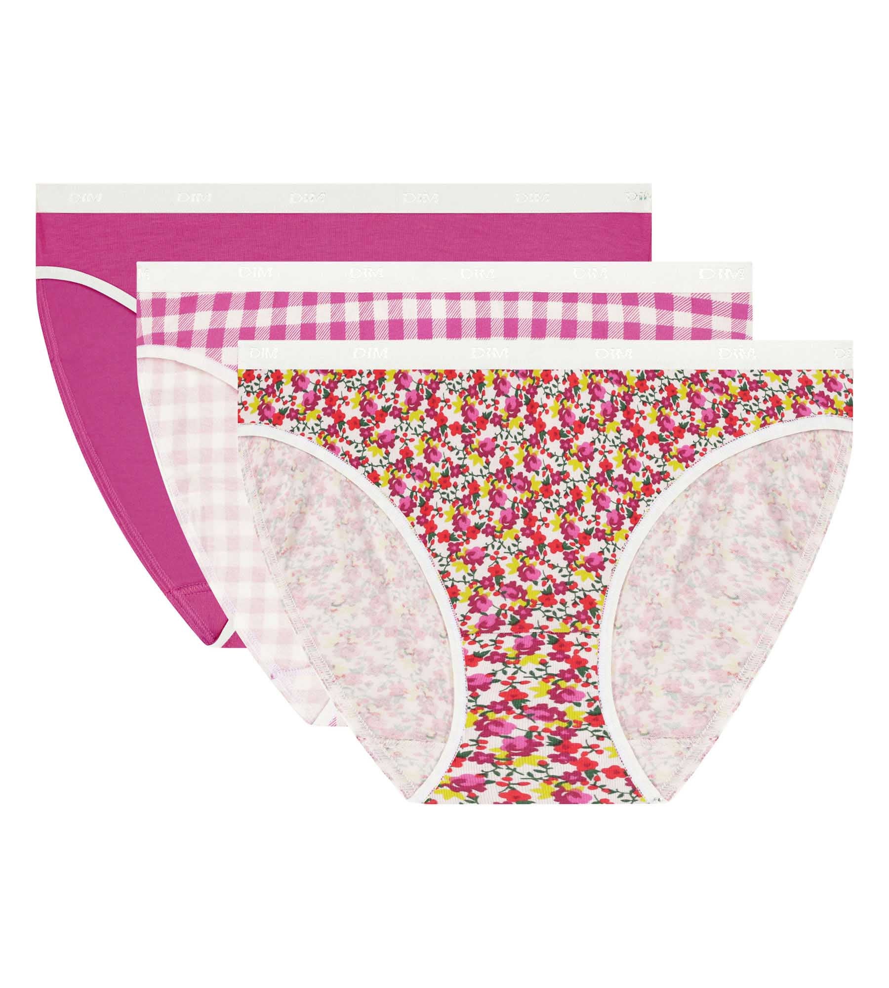 Apportez une touche rétro et colorée à votre lingerie avec le lot de 3 culottes femme Les Pockets de Dim en coton stretch imprimé vichy.