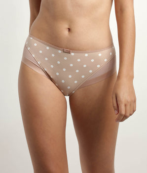 Abordez la journée avec confort et coquetterie grâce à notre slip femme Generous en tulle transparent et microfibre Beige à pois !