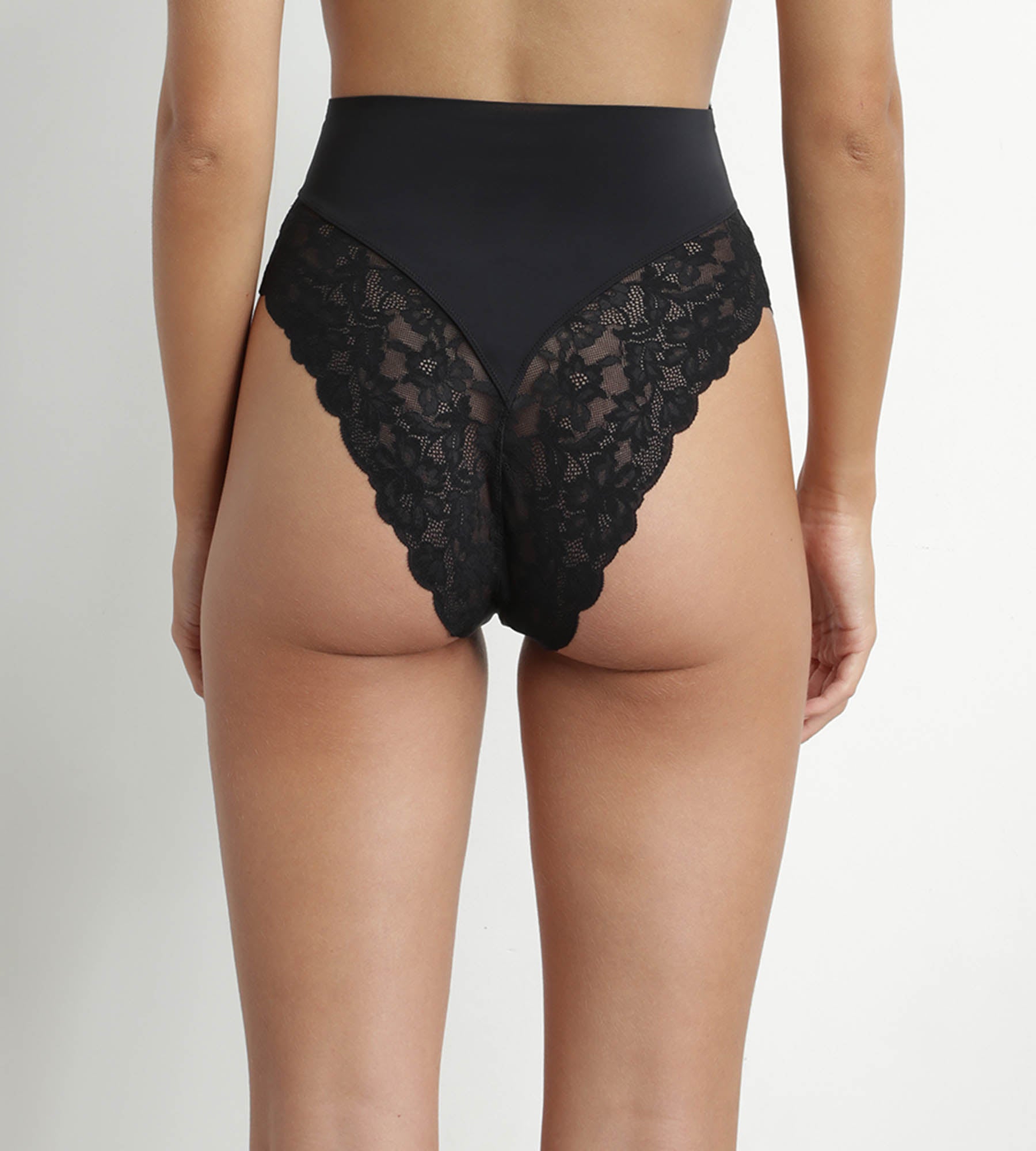 String galbant taille haute microfibre et dentelle Noir Dim Silhouette Elegance