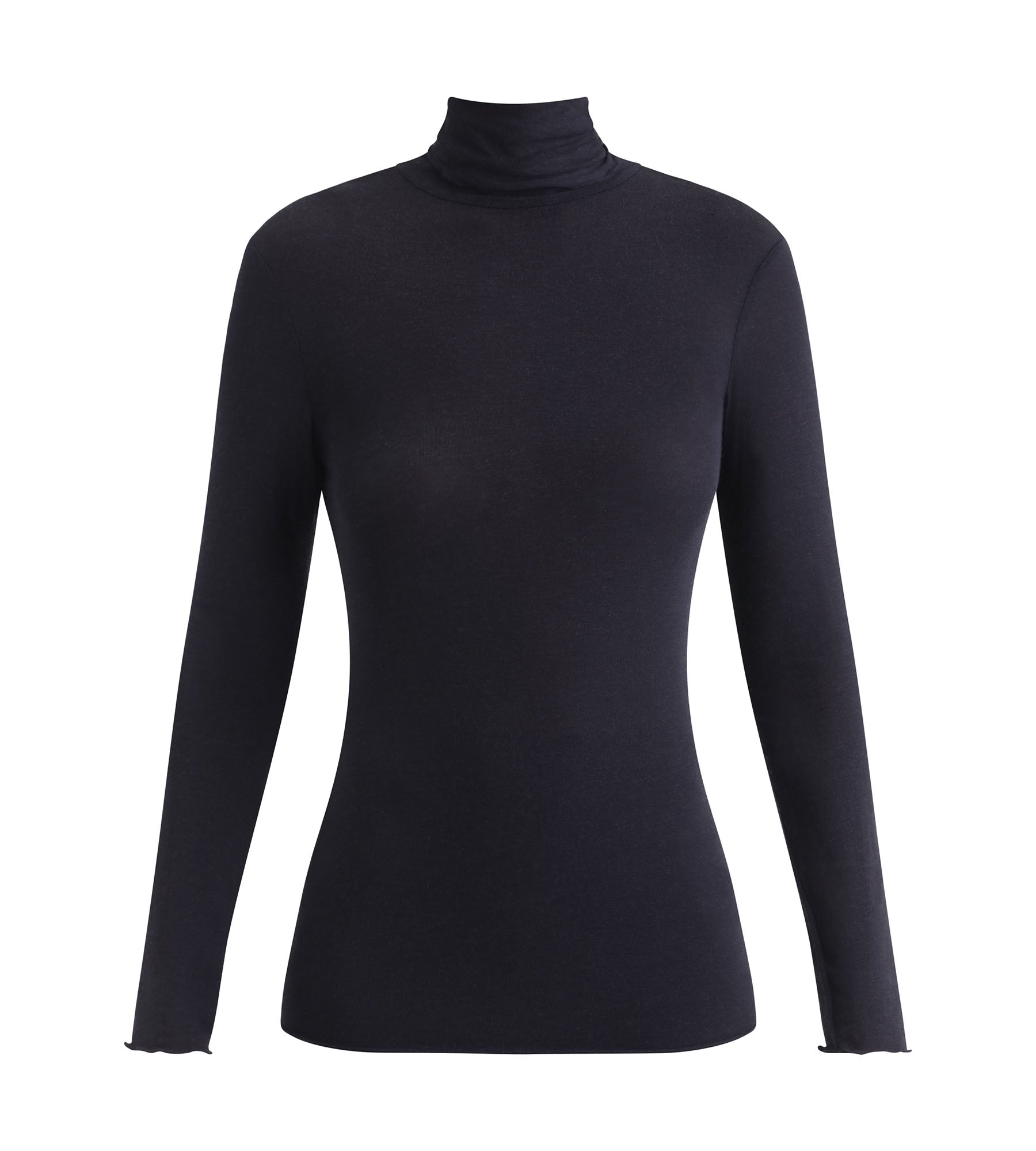 Un basique chaud et élégant : le t-shirt femme Dim Thermal noir à col montant vous accompagne tout l’hiver !