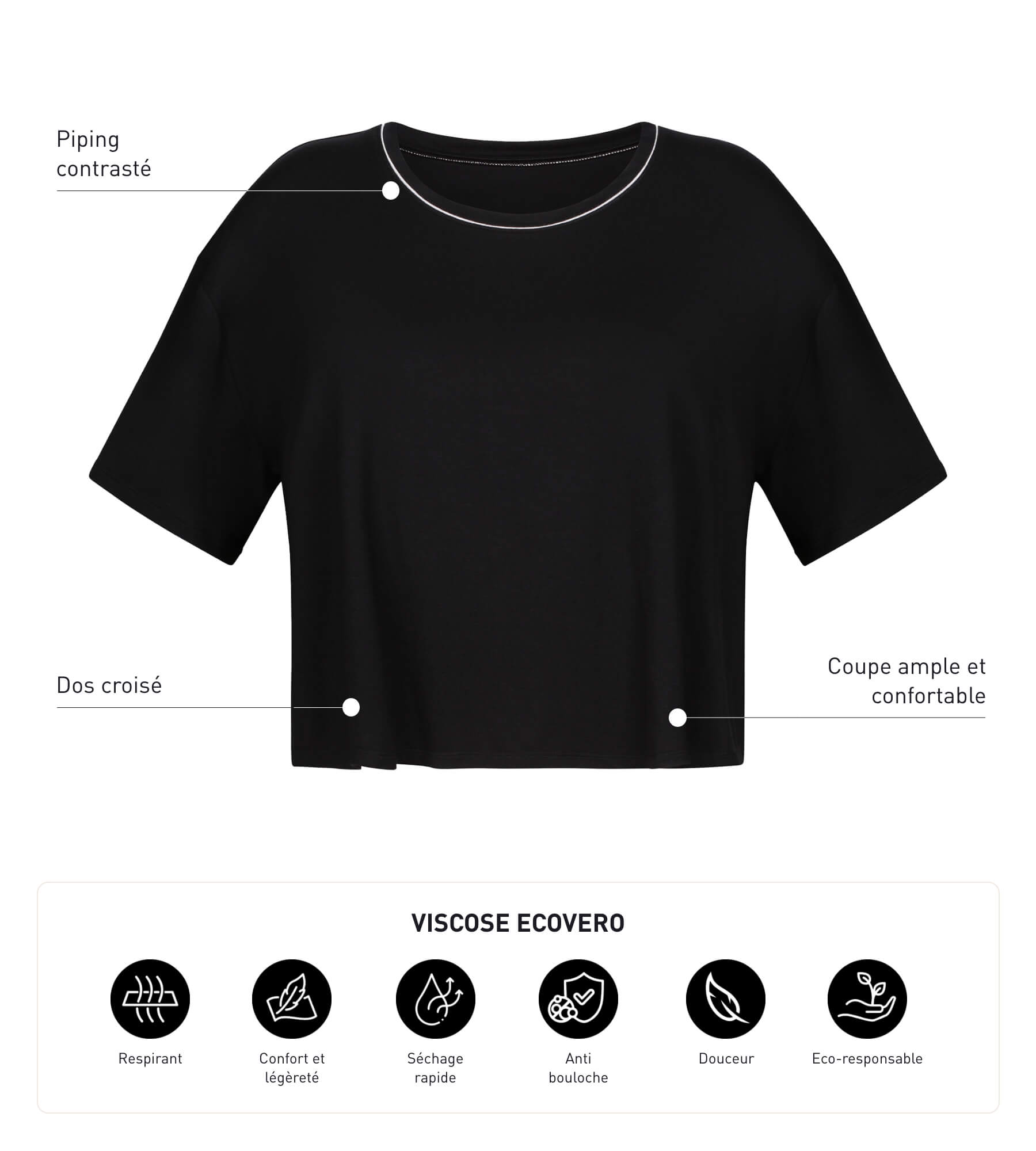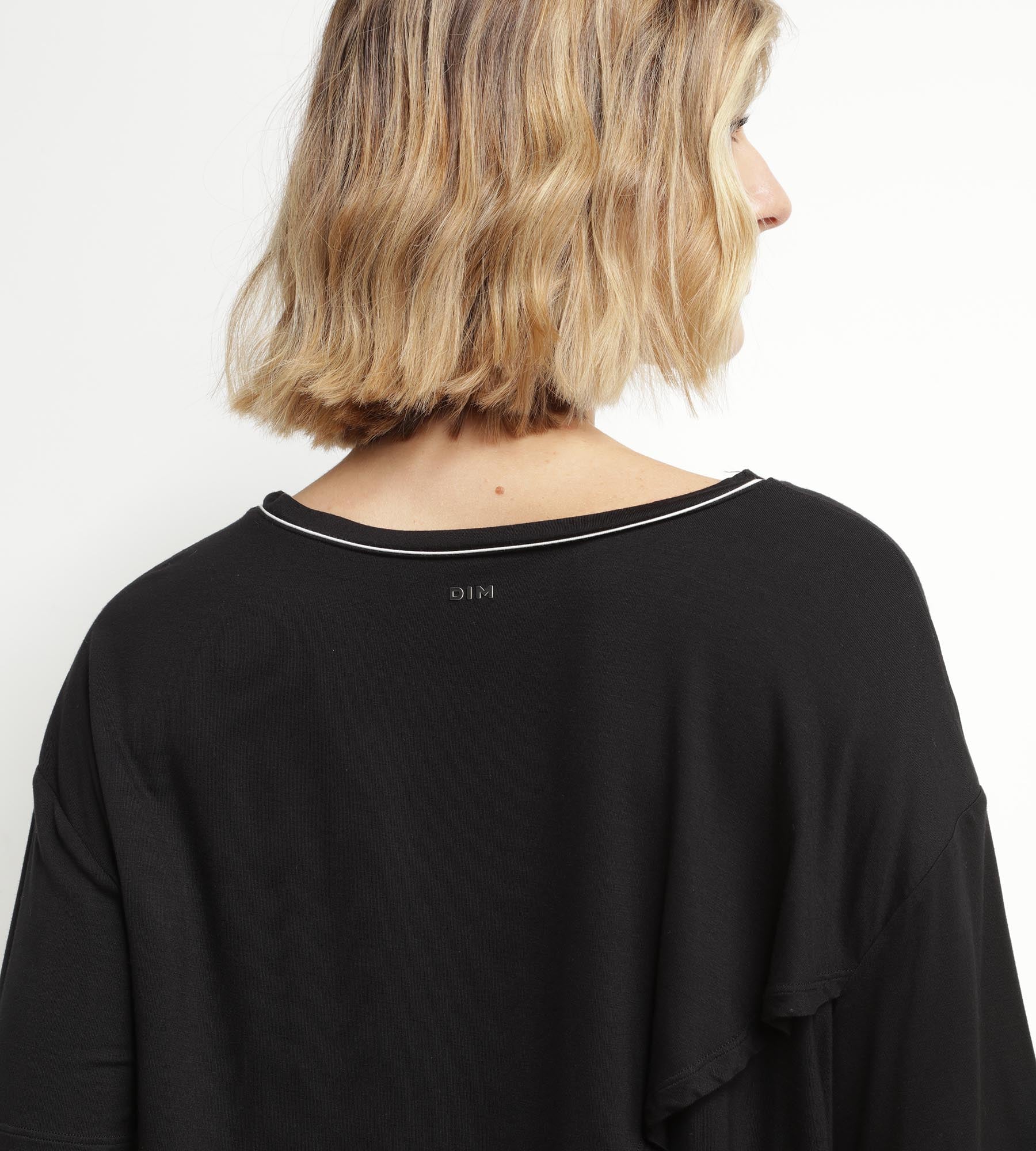 Je look is casual en dynamisch met het DIM Move zwarte viscose loose-fit t-shirt voor dames!