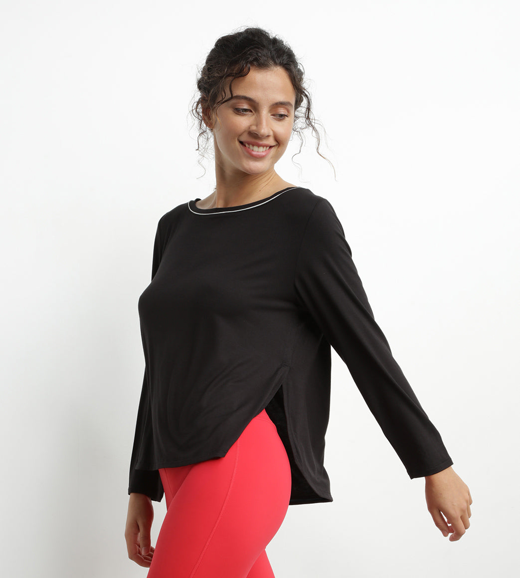 Vang de DIM Move zwarte viscose damessport tops, met een losse pasvorm voor ultiem comfort tijdens inspanning!