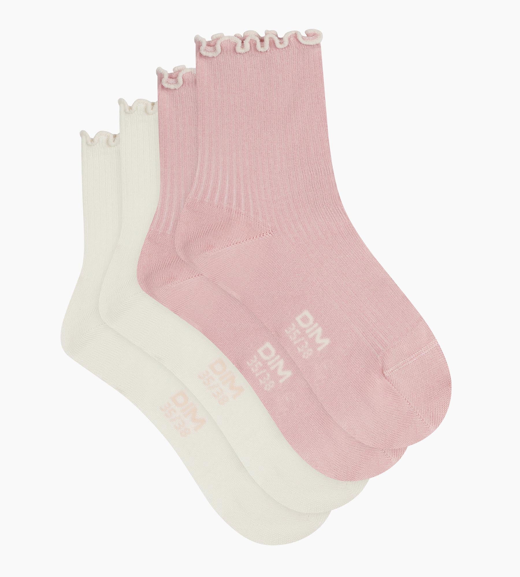Maak plaats voor comfort en verfijning met dit pakket van 2 paar damessokken in roze/ivoorkleurig Dim Modal katoen met een licht golvende zoom.