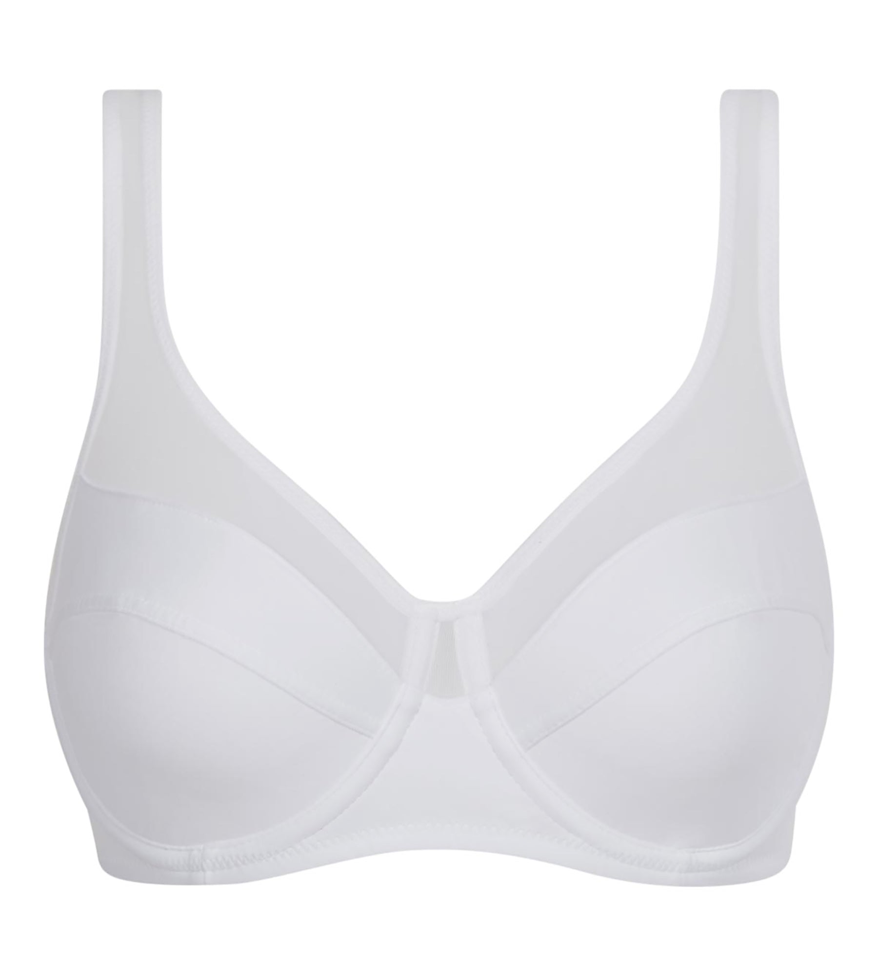Dim zet het comfort van dames op de eerste plaats met de Generous Dim witte beugel push-up BH! Deze bh voor dames is ideaal voor grote borsten en garandeert optimale ondersteuning, zelfs zonder beugels, dankzij de bedekkende vorm en de versteviging van de beugel. Combineer hem met de bijpassende Generous witte slip van microvezel en tule voor een mooie set!