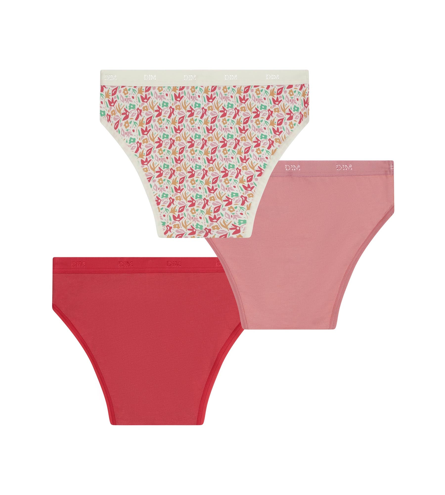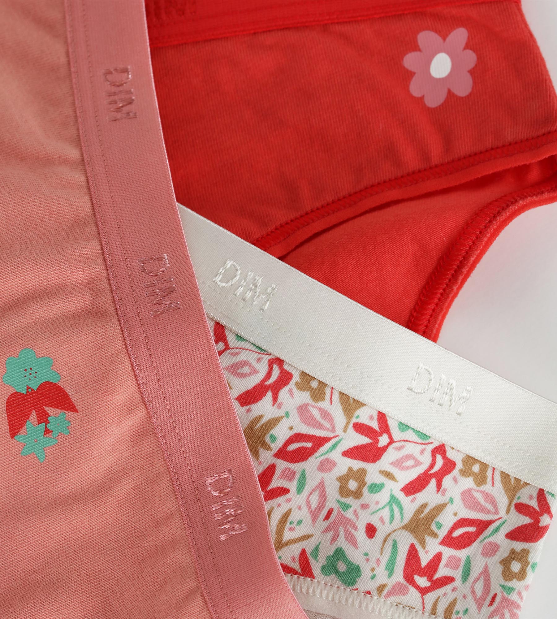 Ga voor de kleurrijke eenvoud van de Les Pockets set van 3 meisjesslips in rood stretchkatoen met hibiscusmotieven.