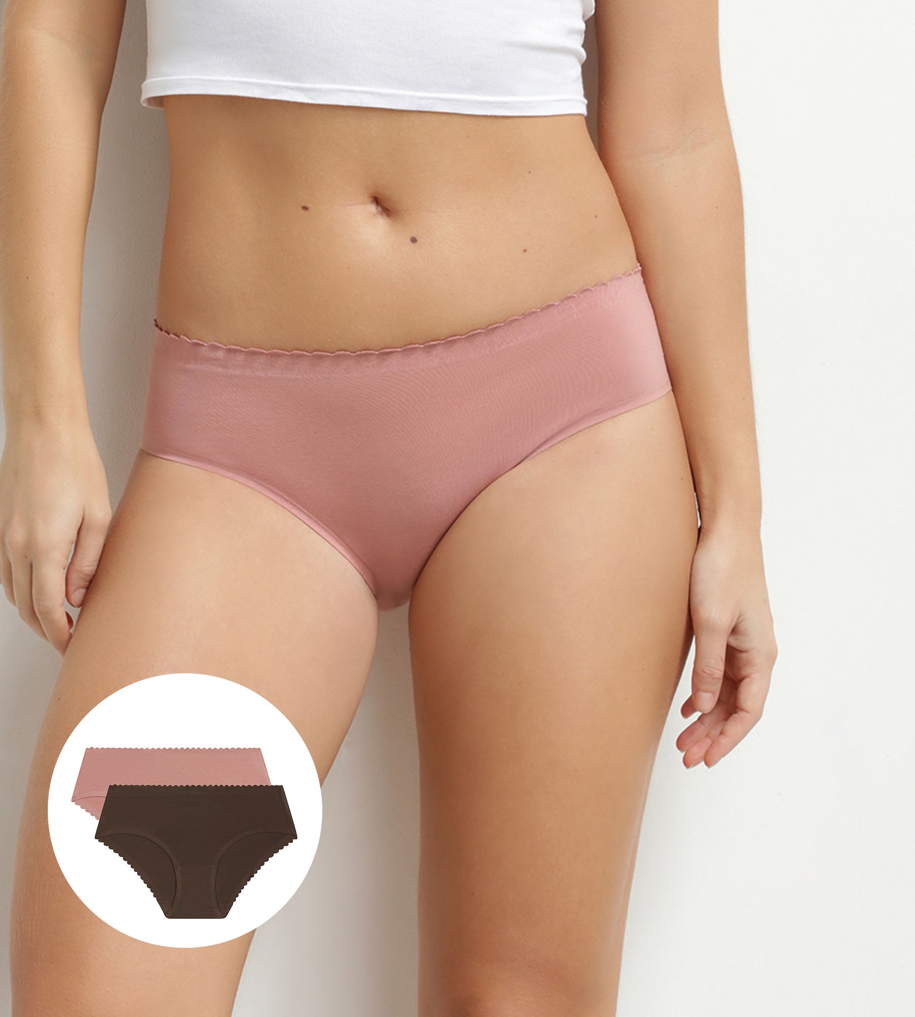 Laat je verleiden door onze set van 2 Body Touch Easy onzichtbare slips in bruin en roze stretchkatoen, die comfort, zachtheid en discretie combineren.