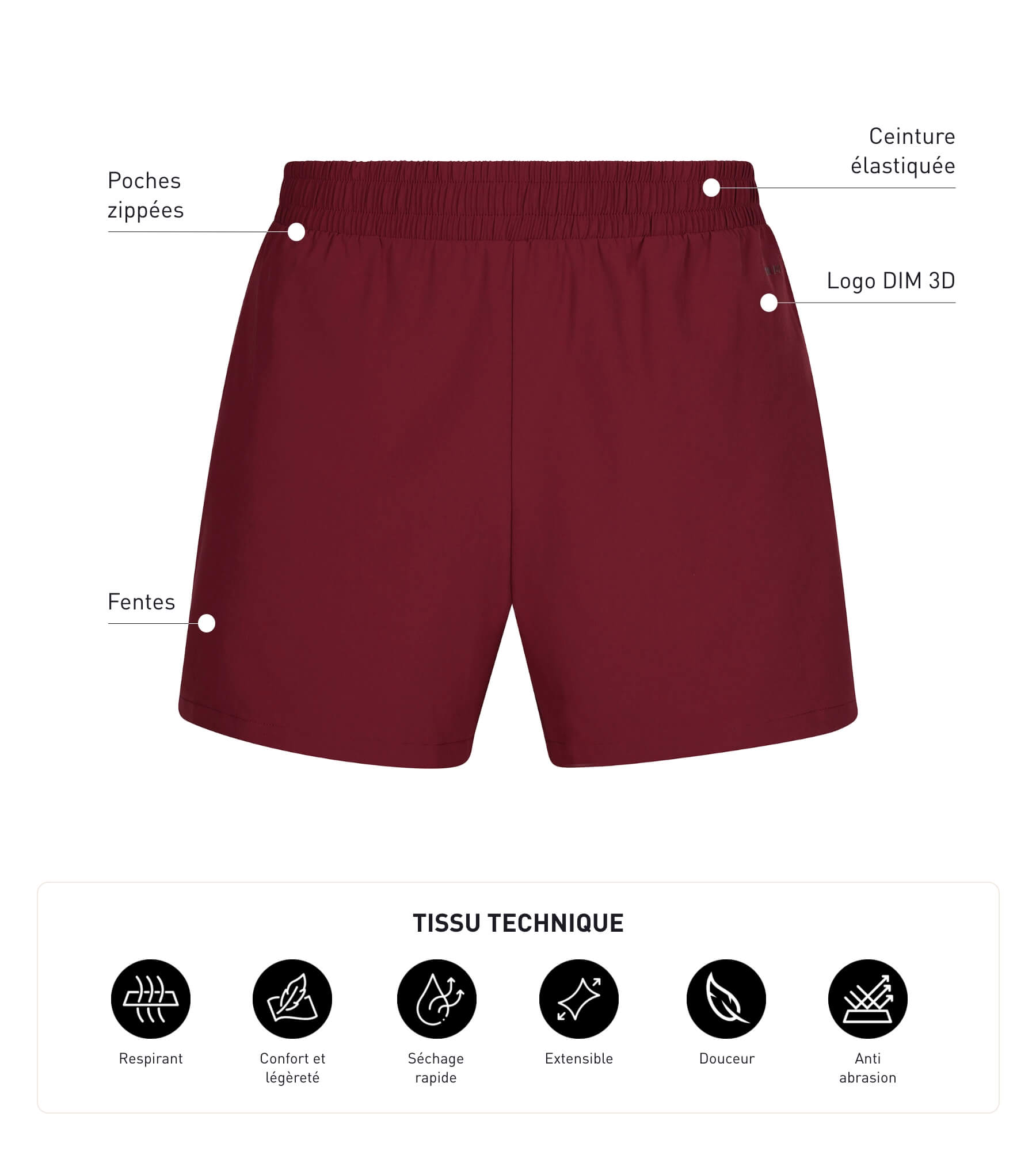 Voeg een vleugje kleur toe aan je trainingsoutfit met de DIM Move Bordeaux shorties voor heren!