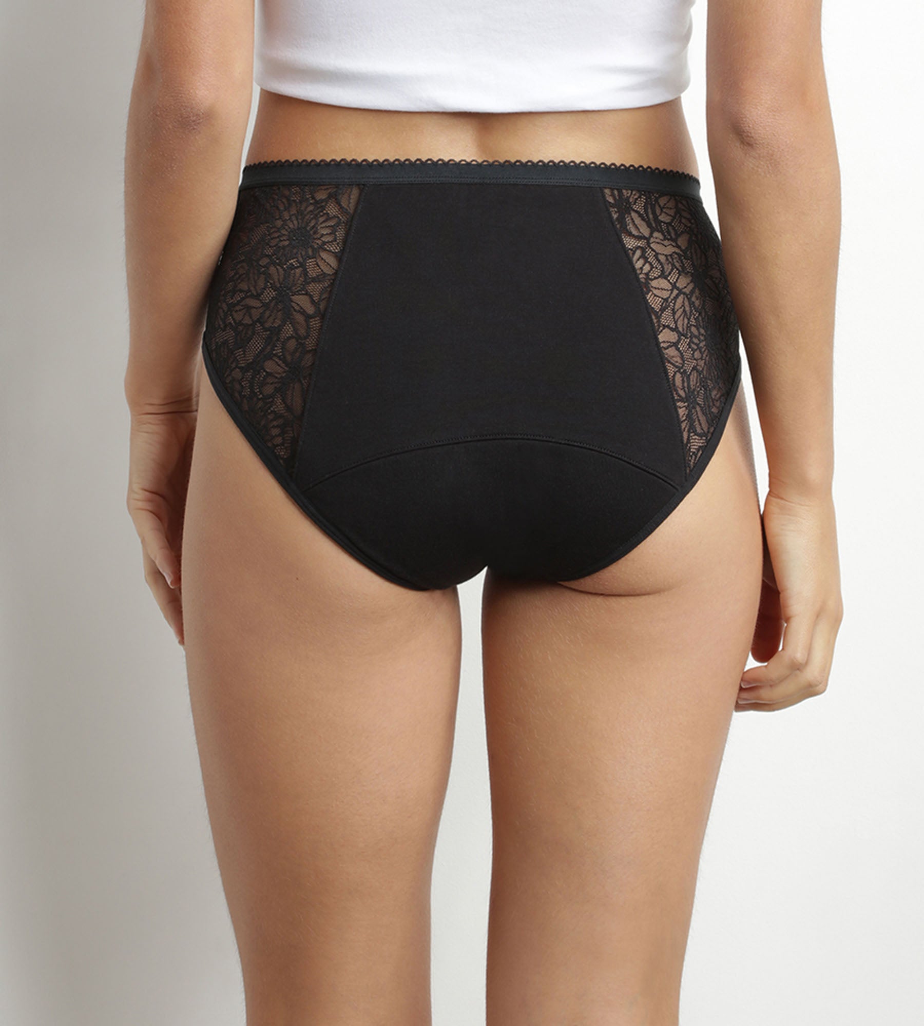 Affrontez vos règles avec confiance et élégance grâce au shorty menstruel Dim Protect en coton bio et dentelle florale noire - pour flux très abondant !