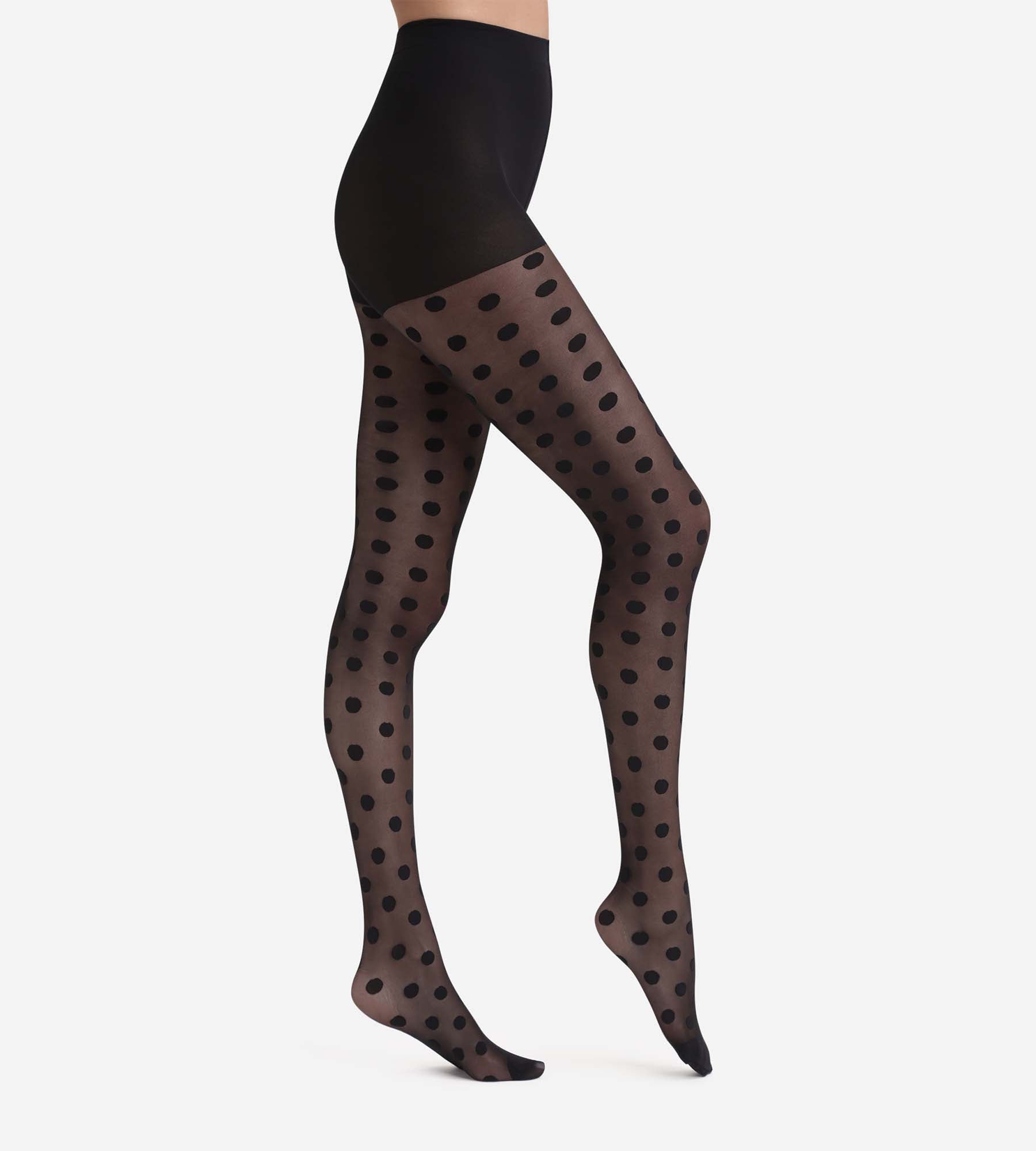 Craquez pour l’allure iconique du collant transparent Noir Dim Style à gros pois !