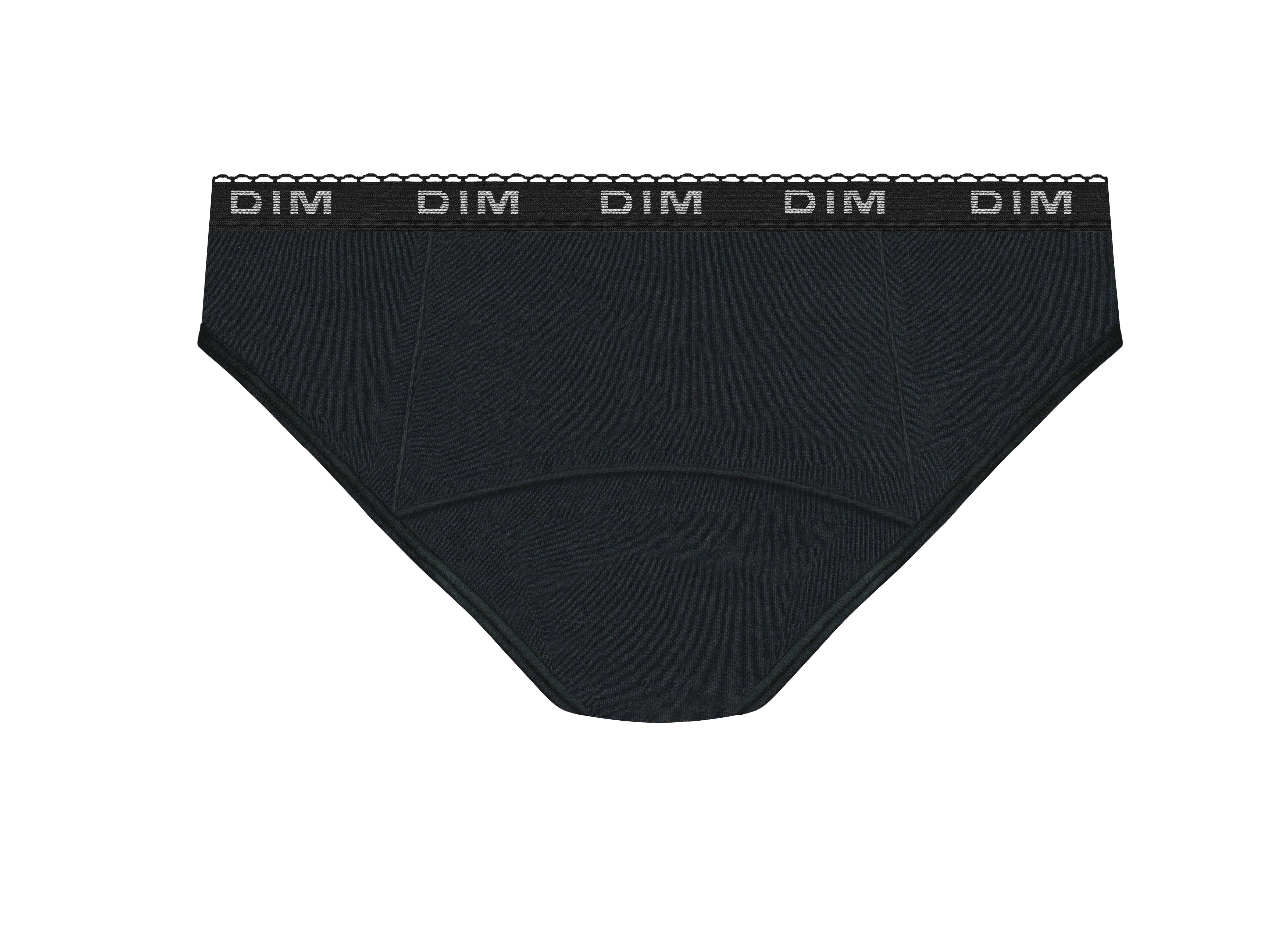 Adoptez la culotte menstruelle en coton bio noir Dim Protect - flux très abondant, conçue pour vous accompagner sereinement pendant les jours de flux intense !