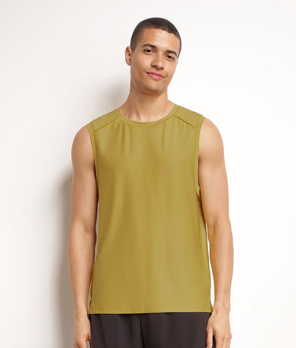 Adoptez le débardeur de sport homme Dim Move en matière aérée Olive, pour des séances d'entraînement tout en confort et légèreté !
