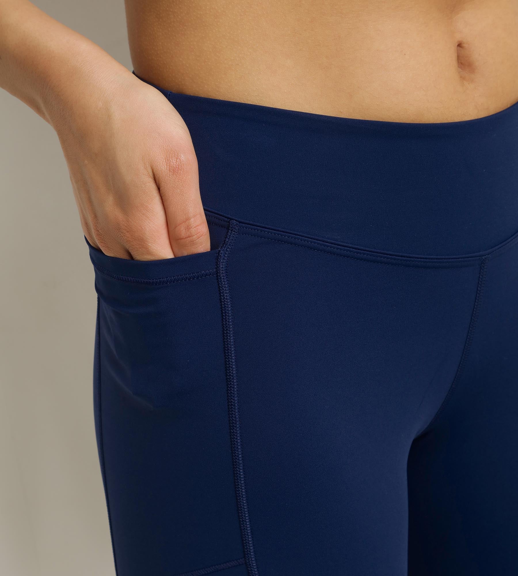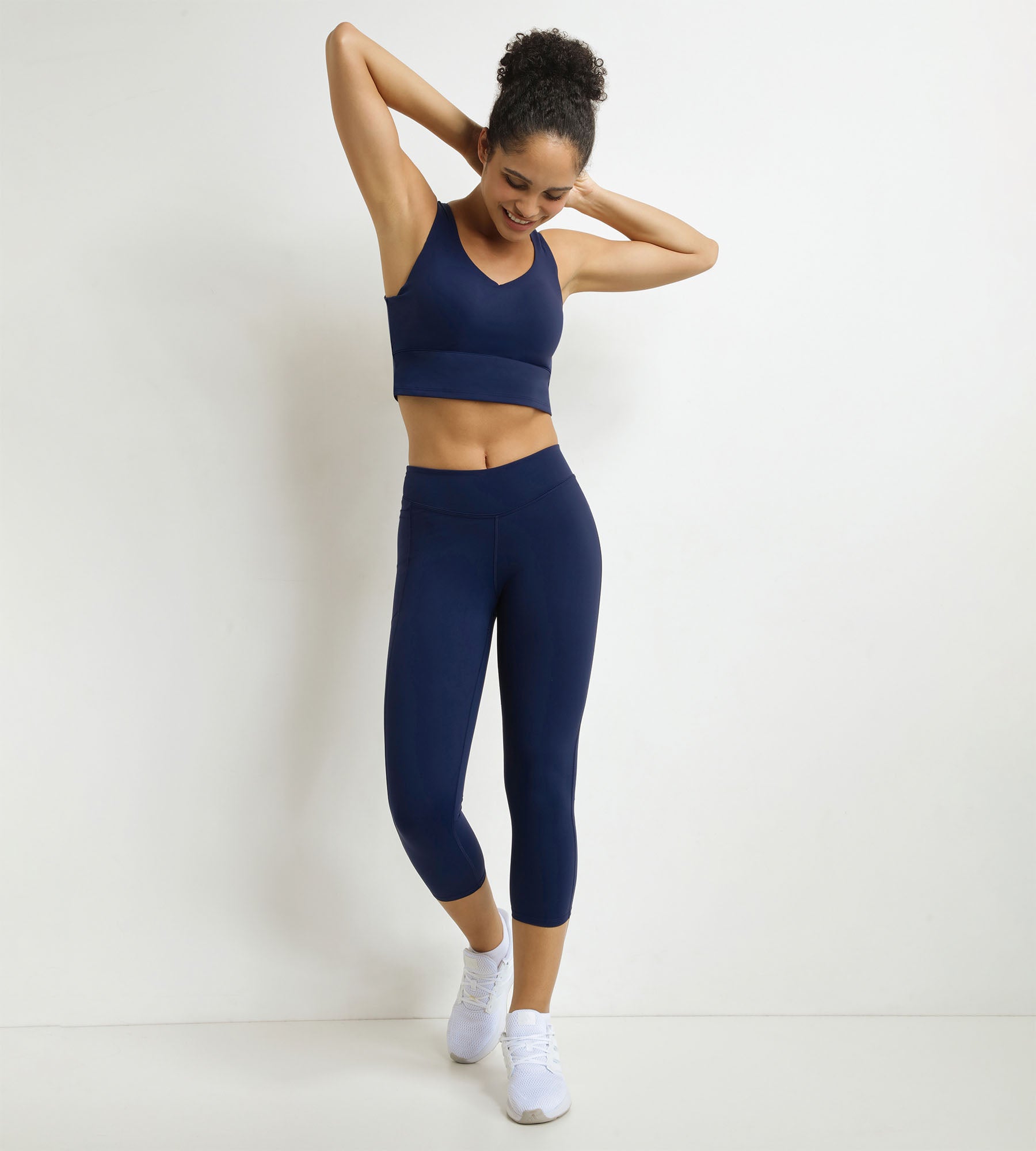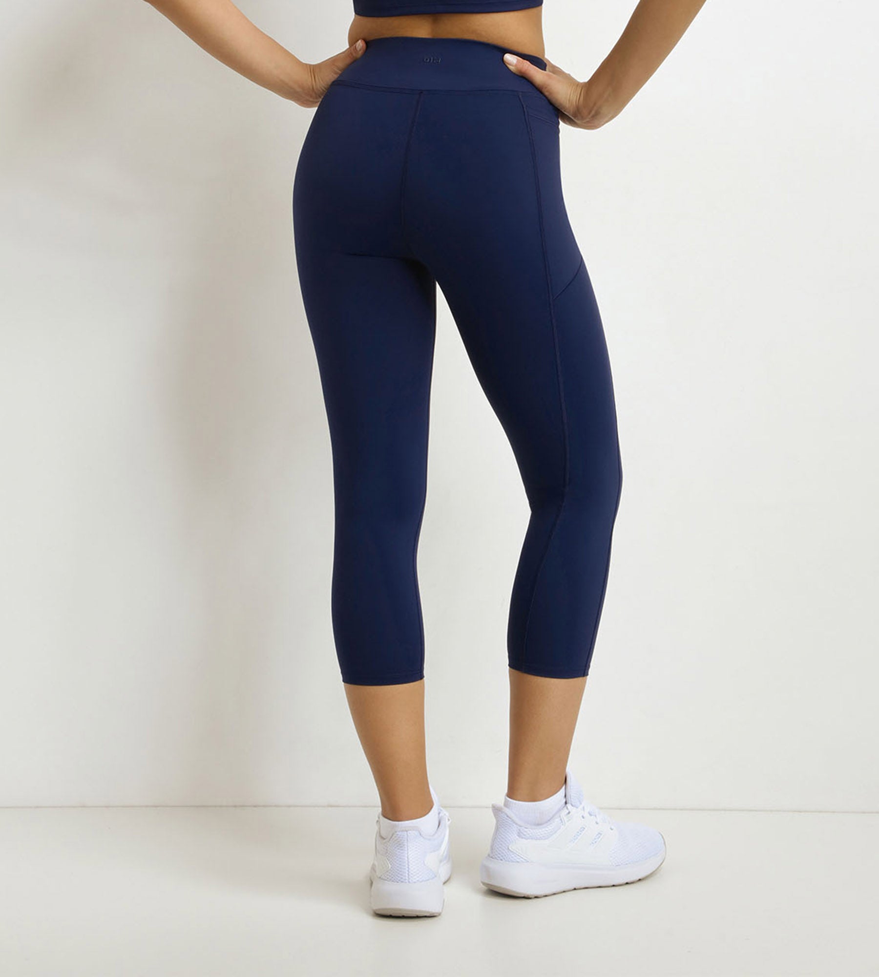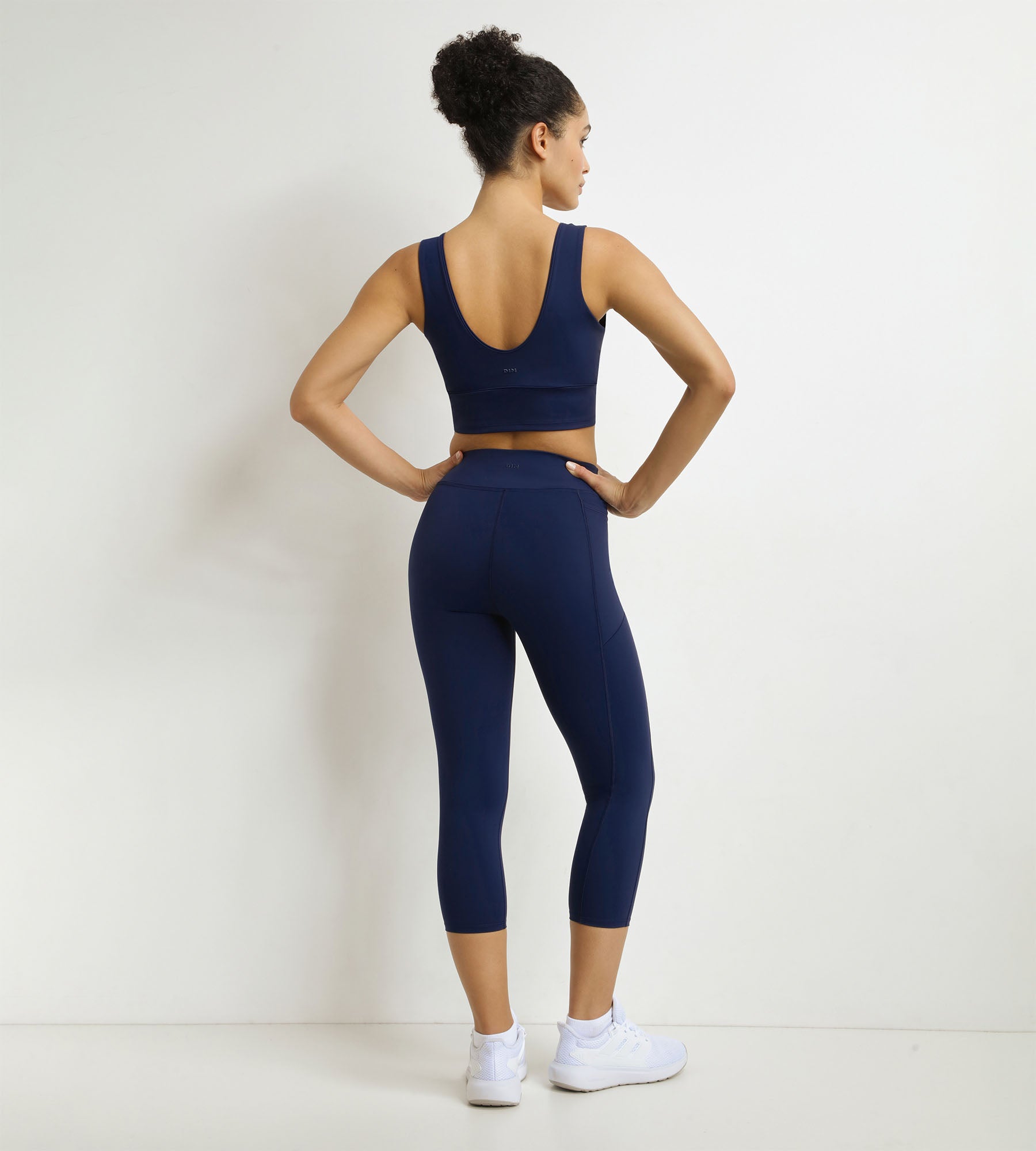 Bougez avec légèreté et confort grâce au legging de sport femme court en microfibre Bleu Nuit Dim Move !