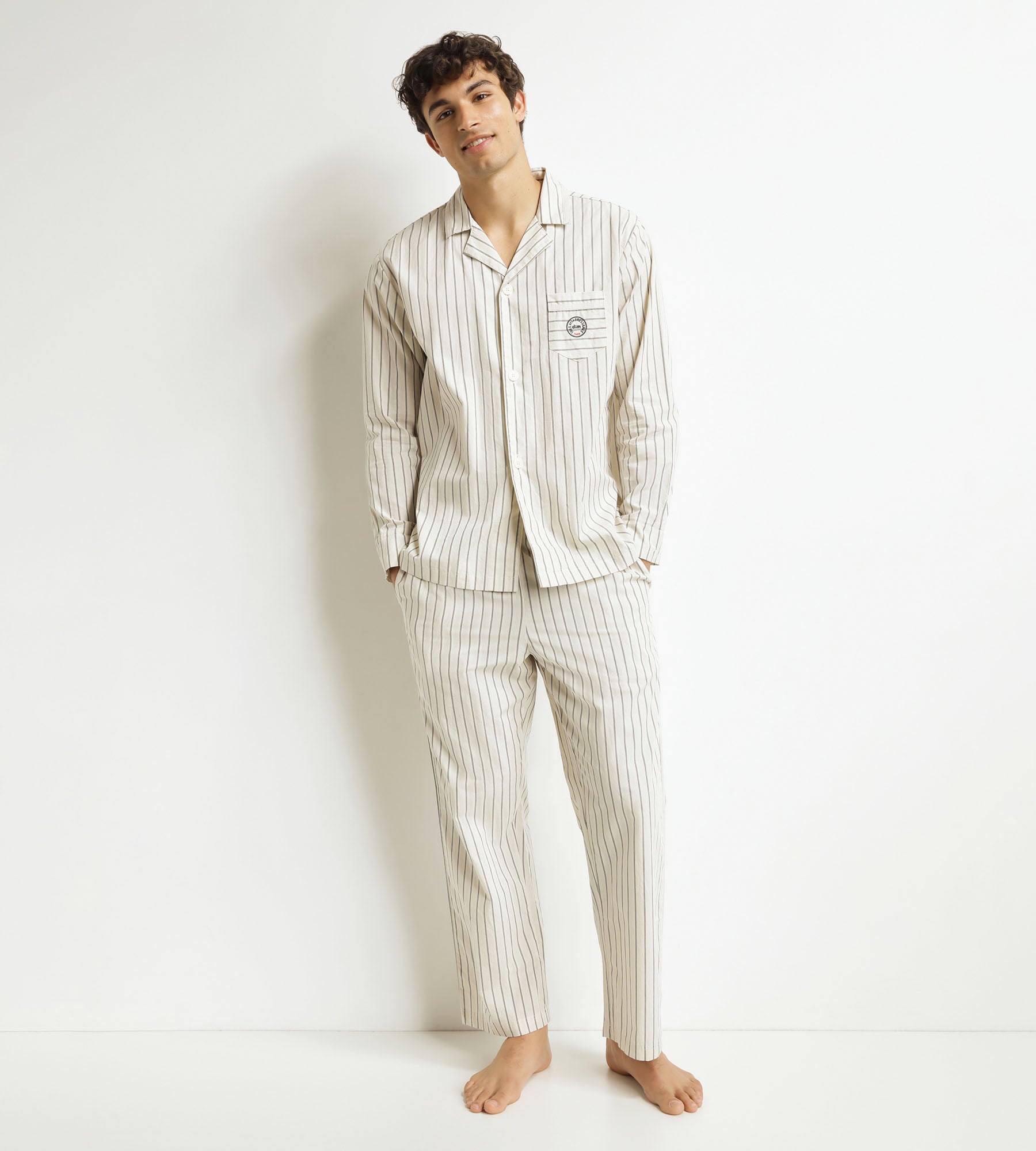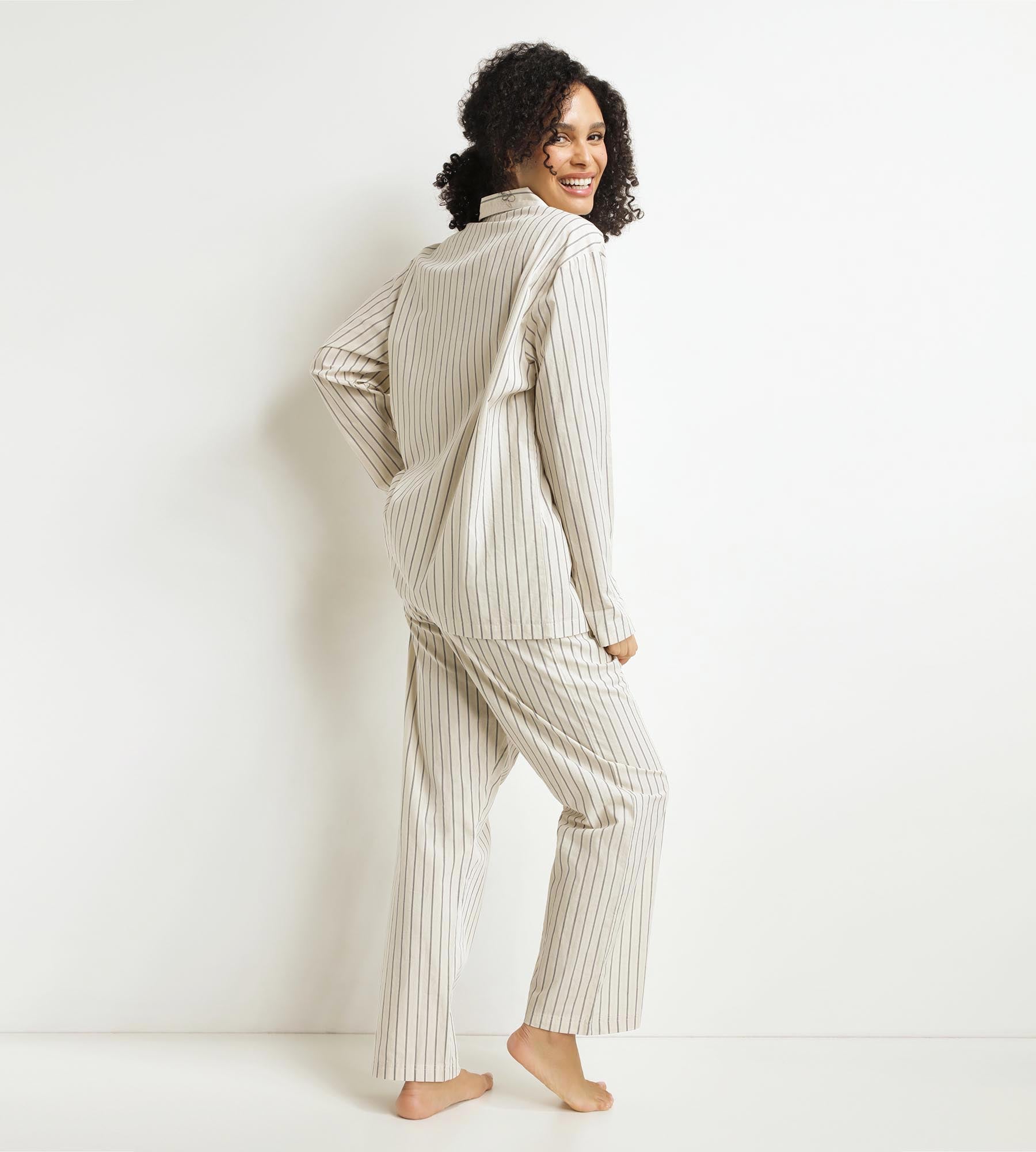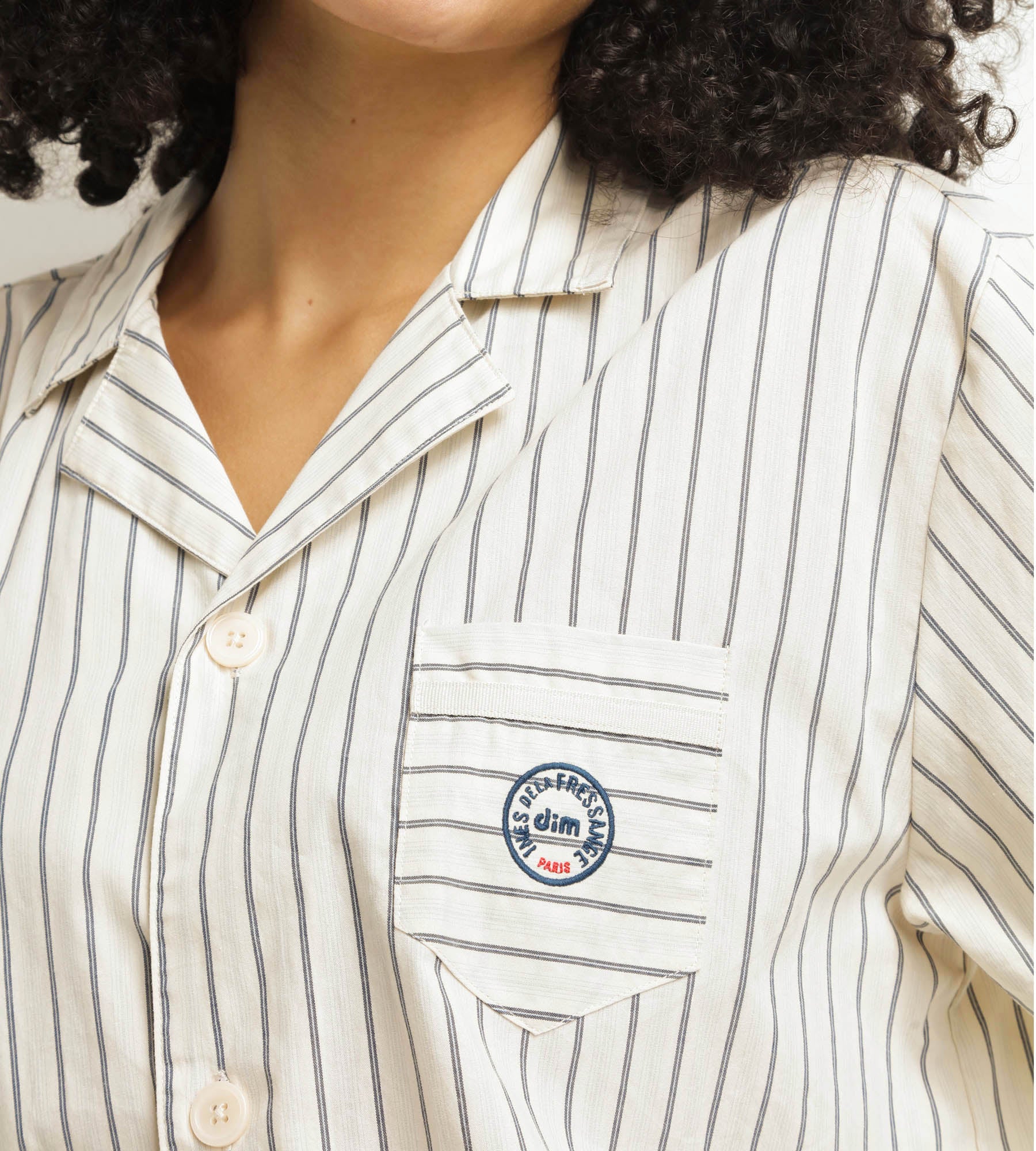 Alliez confort et élégance avec l’ensemble pyjama femme Dim x Ines de La Fressange en popeline Grise à rayures.