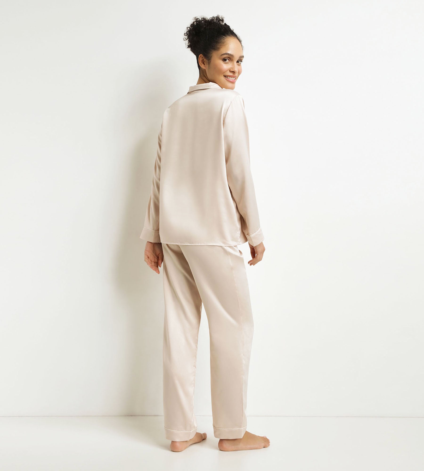 Craquez pour la douceur satinée du pyjama femme Dim Don’t Disturb en coloris nacre, pour des soirées pleines de légèreté.