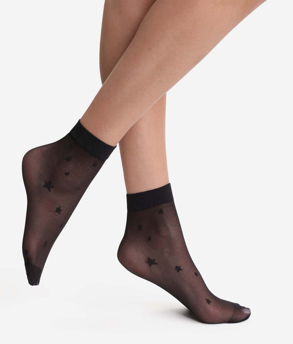 Socquettes transparentes noires à motif Etoiles Dim Style