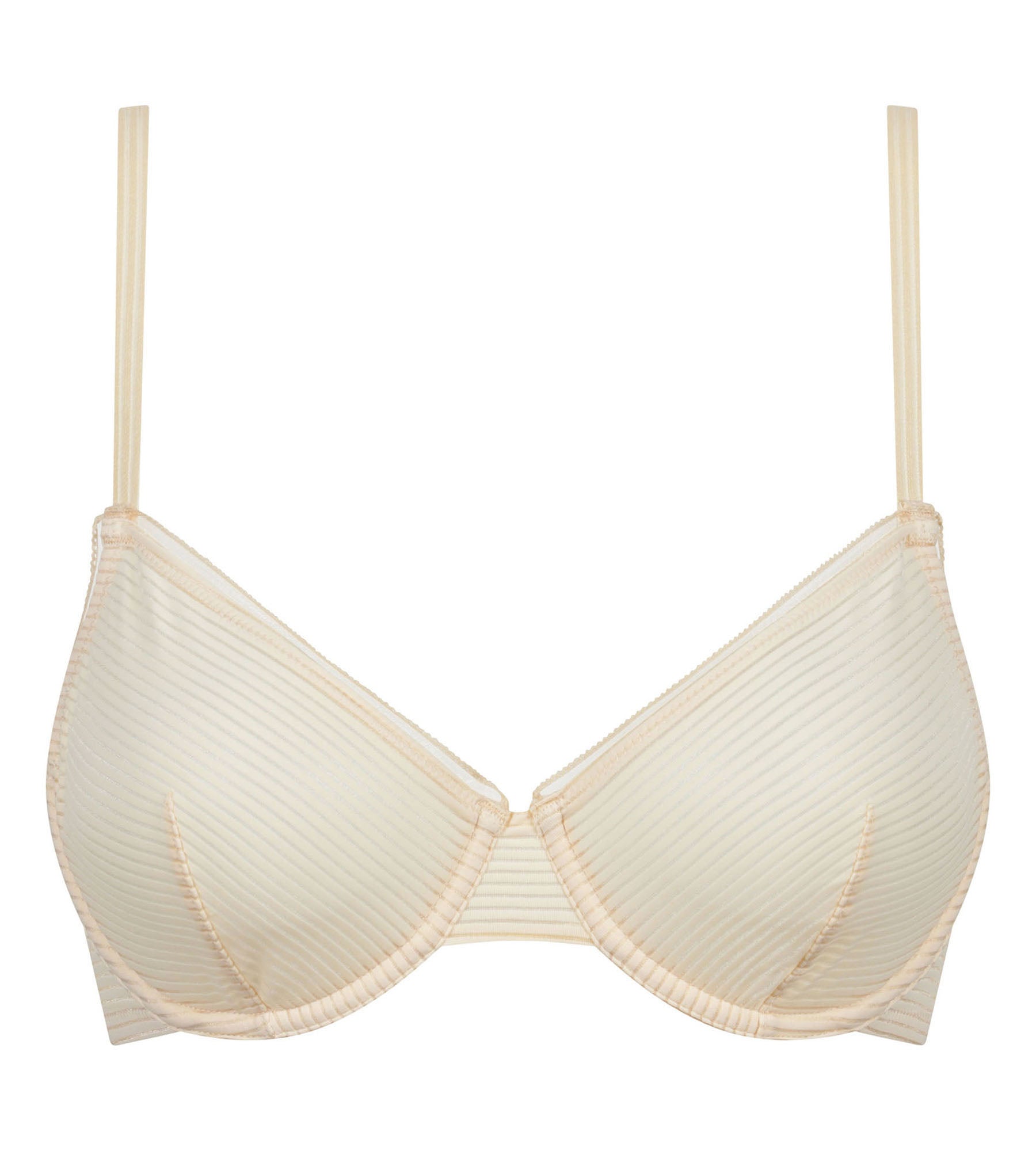 Misez sur l’élégance du soutien-gorge corbeille Dim x Ines de La Fressange aux rayures transparentes et coloris Macadamia doux.