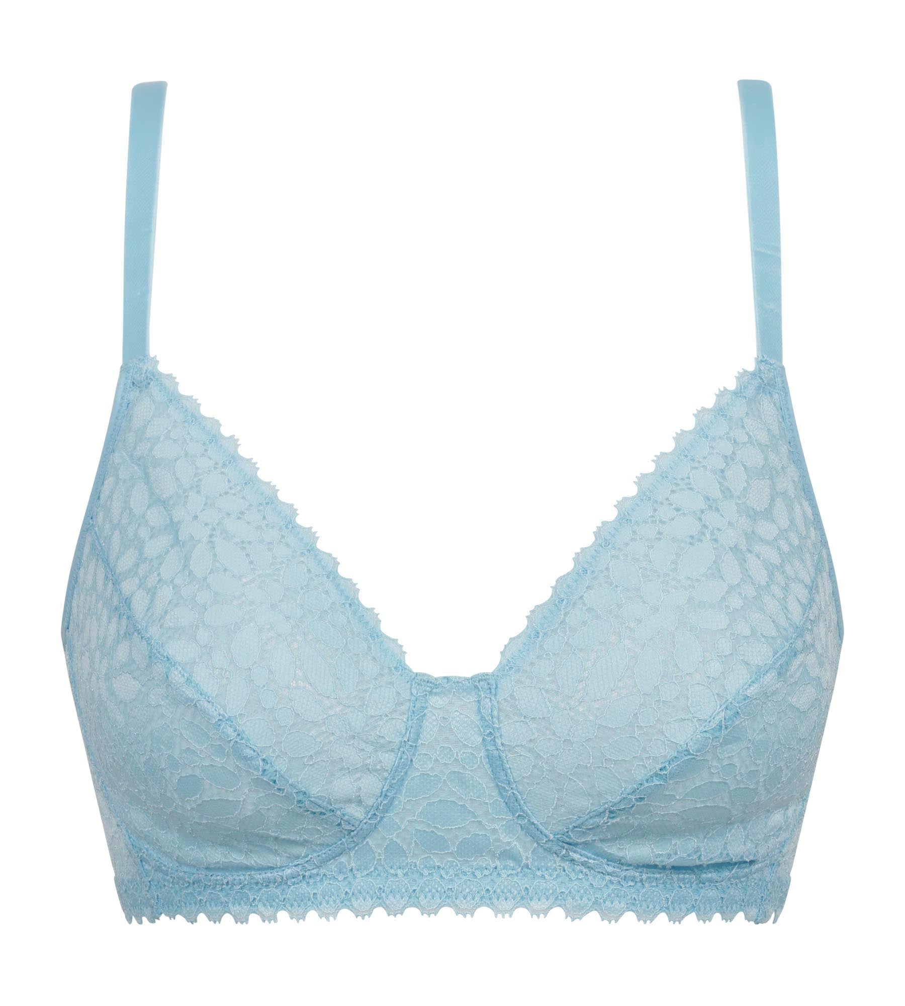 Élégant et confortable, optez pour le soutien-gorge triangle sans armature en dentelle florale Bleu Chemise Daily Dentelle Dentelle !