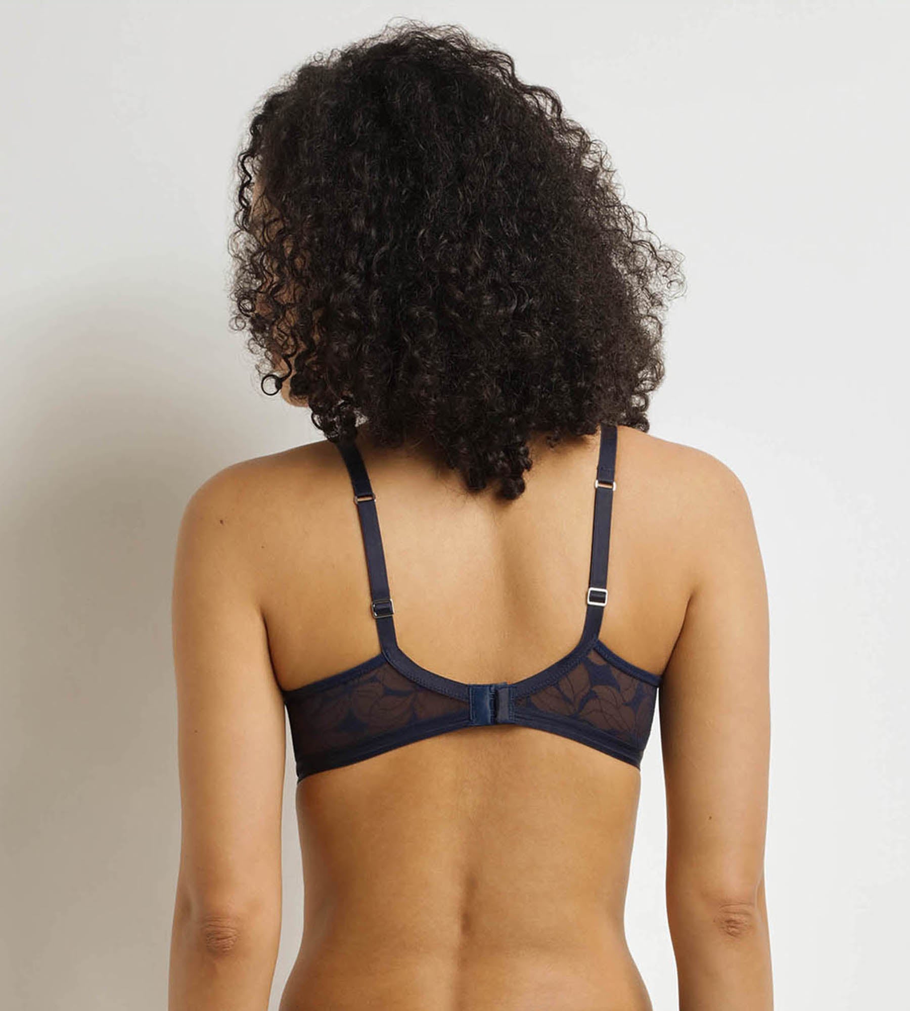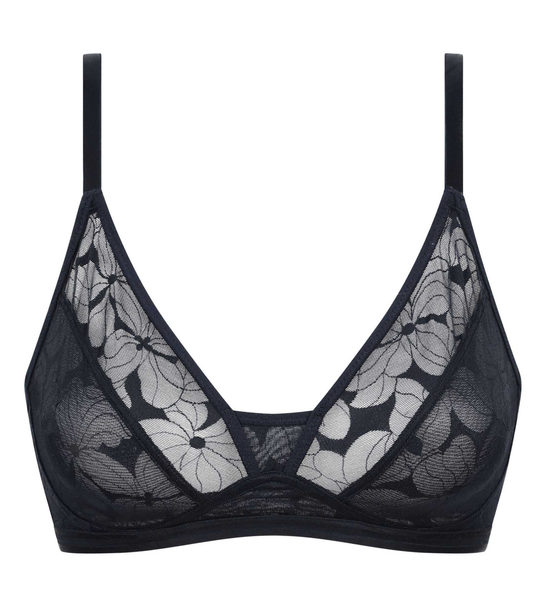 Maintien naturel et style romantique avec le soutien-gorge triangle sans armature Bleu Formel Dim Bloom en dentelle florale.